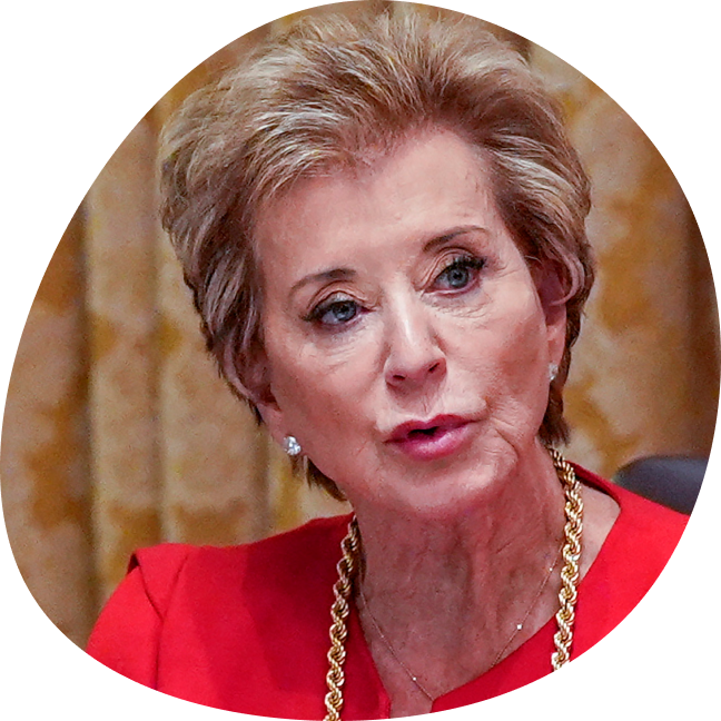 Линда вместе со своим мужем Винсом основала успешный реслинг-промоушен World Wrestling Entertainment (WWE) и возглавляла его почти 40 лет. С 2015 года Макмэхоны пожертвовали Трампу и республиканцам больше 47 миллионов долларов. Впервые избравшись президентом, Трамп сделал Линду Макмэхон руководителем Администрации малого бизнеса. После его возвращения в Белый дом она возглавила министерство образования (Трамп обещал его ликвидировать, но не получил одобрения Конгресса, тем не менее, Макмэхон уже предприняла шаги для расформирования ведомства).