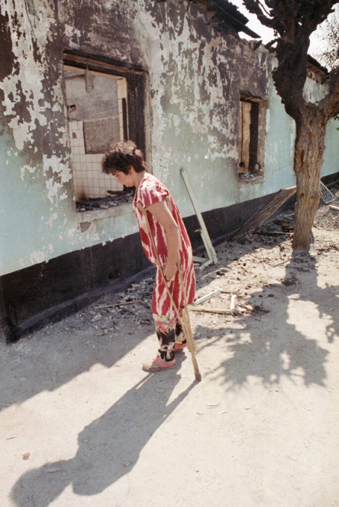 «Подъехала очередная машина из Уткусубани. Сидевшие в машине помогали женщине взвалить на спину раненого мужчину. Позднее мы узнали, что это был ее муж, который совсем недавно был перевезен на носилках из госпиталя двумя медсестрами. Кроме нее некому было его носить. <…> Их так вытащили из дома, что они вообще ничего не смогли с собой захватить», — писала Вачнадзе.