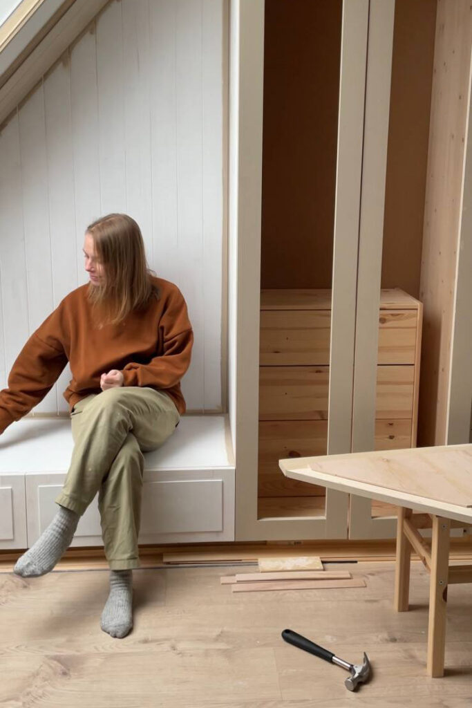 Если бы мы нанимали специалистов, заплатили бы просто баснословные деньги. Нам выставляли огромные счета — например, 20–30 тысяч евро за утепление крыши, а мы сделали за 2000 евро. Некоторую нужную нам мебель нельзя было купить или доставка занимала много времени, и мы решили тоже сделать самим: мы покупали икеевские шкафы, перестраивали их, чтобы они стали более глубокими и удобными. Такой шкаф на заказ обошелся бы в 3000 евро, а мы уложились в 500–600.