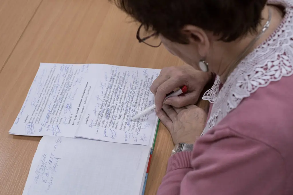 Рядом с преподавательницей сидит самая молодая студентка группы. Она внимательно всё конспектирует и сверяется с распечатками домашней работы. Софье 21 год, она выпускница колледжа и работает бухгалтером. На занятия девушка ходит вместе с мамой Раисой — та сидит рядом с дочкой. По-карельски говорит бабушка Софьи, поэтому, когда они с мамой узнали о бесплатных курсах, сразу записались. «Планирую изучать и дальше, чтобы можно было свободно общаться на карельском с родными и близкими, да и мало ли — пригодится в дальнейшем», — позже расскажет мне Софья.