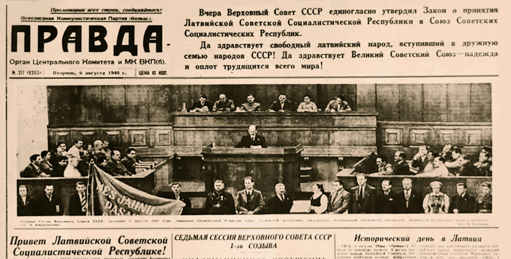 Так в 1940 году на карте Европы появилось новое образование — Латвийская Советская Социалистическая Республика. ЛатССР не признали многие западные страны, а в современной Латвии вступление в состав Советского Союза считают оккупацией. Советская пропаганда утверждала, что «принятие Латвии в семью братских народов СССР» обеспечит безопасность северо-западных границ и поможет местным латышам избавиться от «эксплуататорской шайки капиталистов и помещиков».