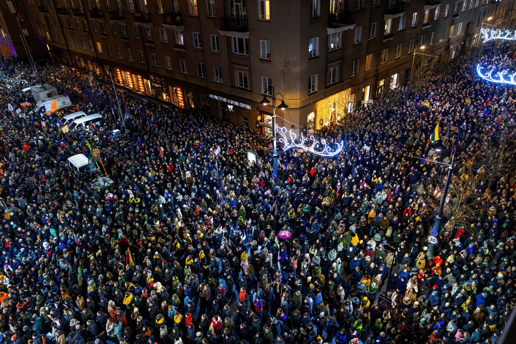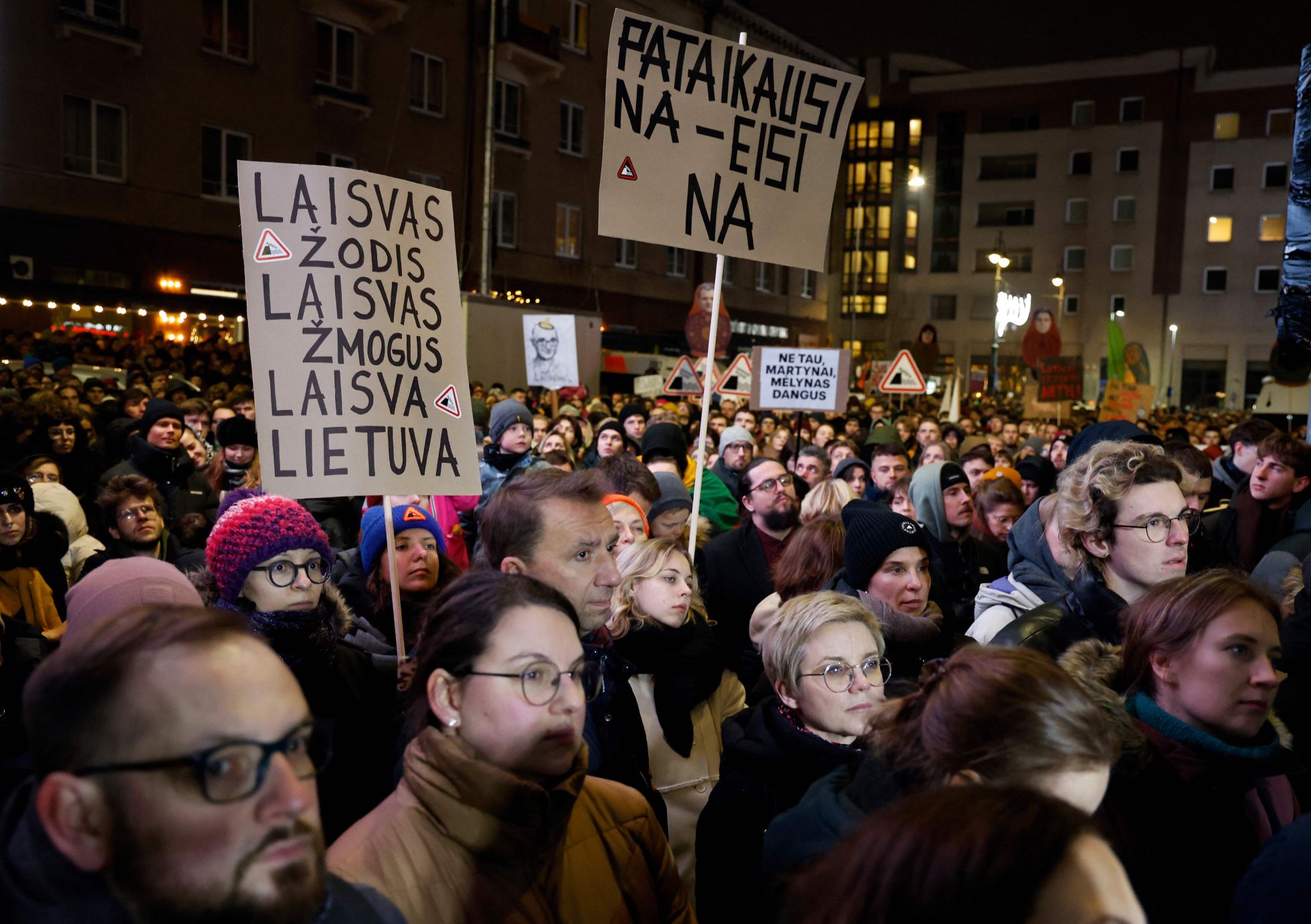 Despite the backlash, the Seimas continued debating the amendments. In protest, LRT journalists began broadcasting from outside the parliament building in Vilnius’s Independence Square, where crowds of demonstrators have continued to gather and light bonfires every evening. Participation in the protests has grown steadily, with LRT reporting 6,000 people on December 16 and 10,000 on December 17. Lawmakers were scheduled to consider the amendments on December 18, but LRT reported on Thursday that the vote would be postponed after the head of the Culture Committee was hospitalized. Meduza shares photos from the protests in support of LRT’s independence.