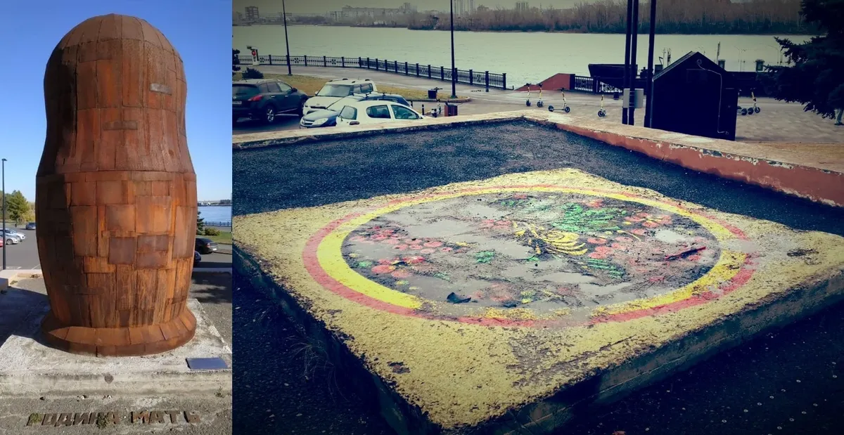 С началом СВО нападки правильной общественности на музей, на Слонова, матрешку, естественно, участились, и в 2023-м матрешку демонтировали — после очередной смены директора музея (тогда по регионам широким фронтом прошла волна, смывшая директоров библиотек, музеев, театров — культурных институций, подконтрольных местным властям). Заявили, что Родину-мать отправили на реставрацию. Понятно, не вернулась. Осталась от нее плита на асфальте, расписанная под хохлому.