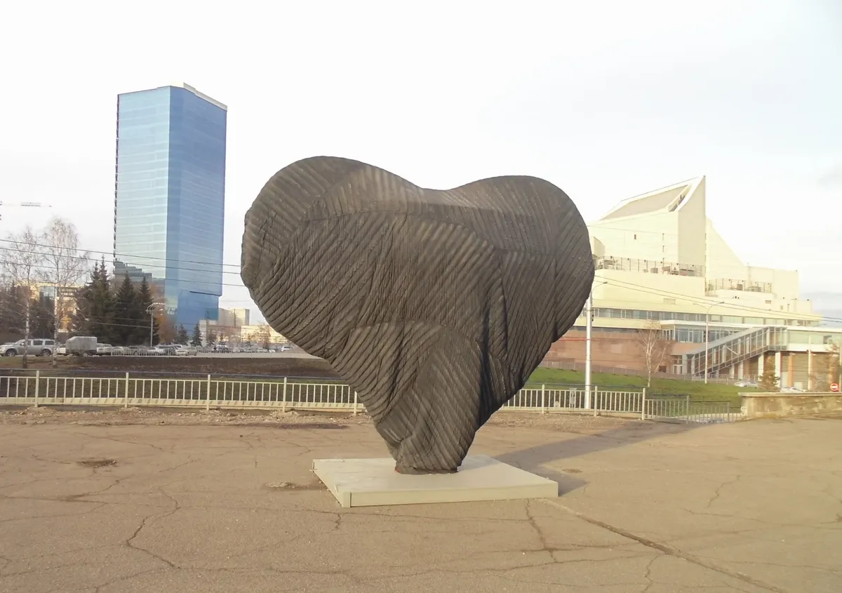 Десять лет назад, в 2015-м, Слонов открыл в Москве на Винзаводе выставку «Ватники апокалипсиса», уже был «Сад ватных камней», ватные купальники и ласты, а здесь, на Стрелке, художник установил «Ватное сердце Родины». «У нас всех есть Родина. И несомненно, наша Родина — она Мать. И естественно, у матери должно быть сердце. А какое оно, это сердце? Конечно же, ватное, конечно же, большое и теплое. <…>».