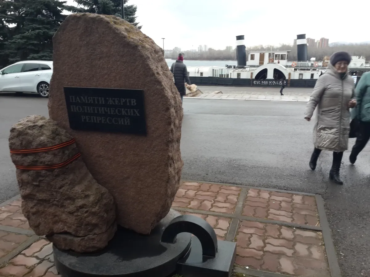 И вот за день до зачистки музея и спустя день после выступления Пензиной ее коллега и руководитель (по парламентскому комитету) Кулеш приходит к камню и стоит с гвоздиками. «Возвращения имен» в Красноярске больше нет, во всяком случае организованно имена расстрелянных уже несколько лет не зачитывают. Сначала эпидемиологические ограничения, а два года назад «Площадь мира» (все главные акции этого дня прежде проходили здесь) вдруг закрыли: сообщили о минировании здания. За три дня до того собрание с концертом по этому же поводу планировали во Дворце Труда — внезапно и до следующего утра его обесточили.