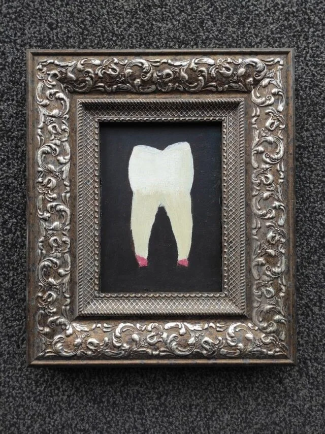 Несмотря на блестящие перспективы — не сложилось. Зато будущий большой художник Василий Слонов, в 90-е только начинавший, зарабатывал одно время, рисуя зубы. Точнее, всякий раз один зуб, а вокруг виньетки орнамент. У стоматологов уже тогда стал культовым живописцем. А к столетию русской революции Слонов сделал для музея серию «Русская улыбка», и это уже не зубы — модули для советского антропологического проекта, для конструктора человека нового типа (эти железные зубы, вырывая у мира счастье — чтобы для всех и даром, — сломаются).