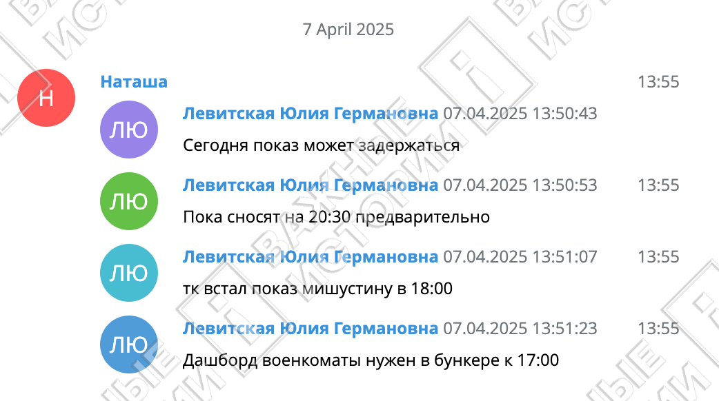 Показы чиновникам проходили нервно и с проблемами. «Сегодня показ может задержаться. Пока сносят на 20:30 предварительно, так как встал показ Мишустину в 18:00. Дашборд нужен в бункере (вероятно, речь идет о координационном центре правительства через реку от Белого дома. — Прим. ред.) к 17:00», — писала Юлия Левитская, куратор разработки реестра со стороны правительства.