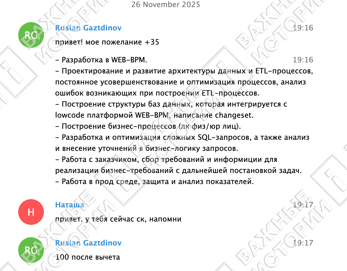 Спустя пару дней после возвращения из этой командировки Газтдинов заговорил с Соболевой о повышении: просил поднять зарплату со 100 тыс. до 135 тыс. рублей.