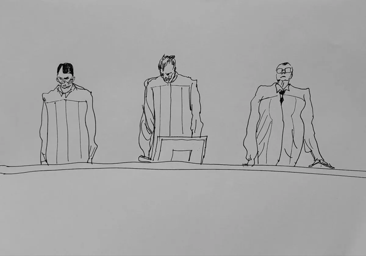 После выступлений сторон коллегия из трех судей удалилась в совещательную комнату. Во время перерыва группа поддержки смогла пообщаться с Гориновым и узнать о его состоянии и условиях содержания.