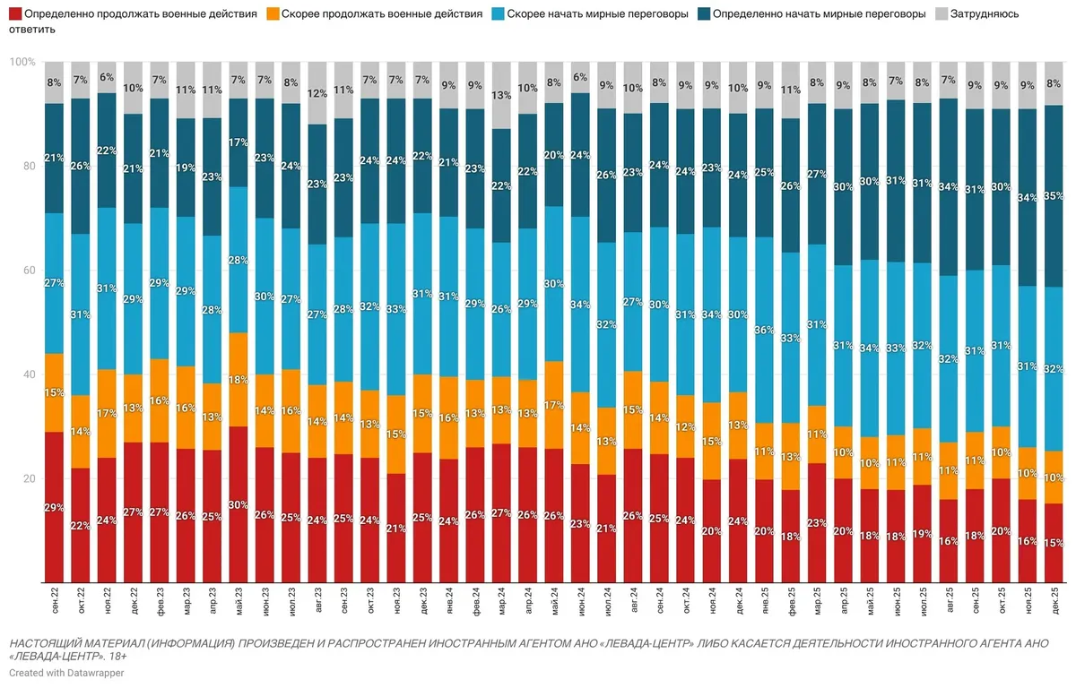 Доля убежденных сторонников мирных переговоров составила 35%, и это новый максимум.