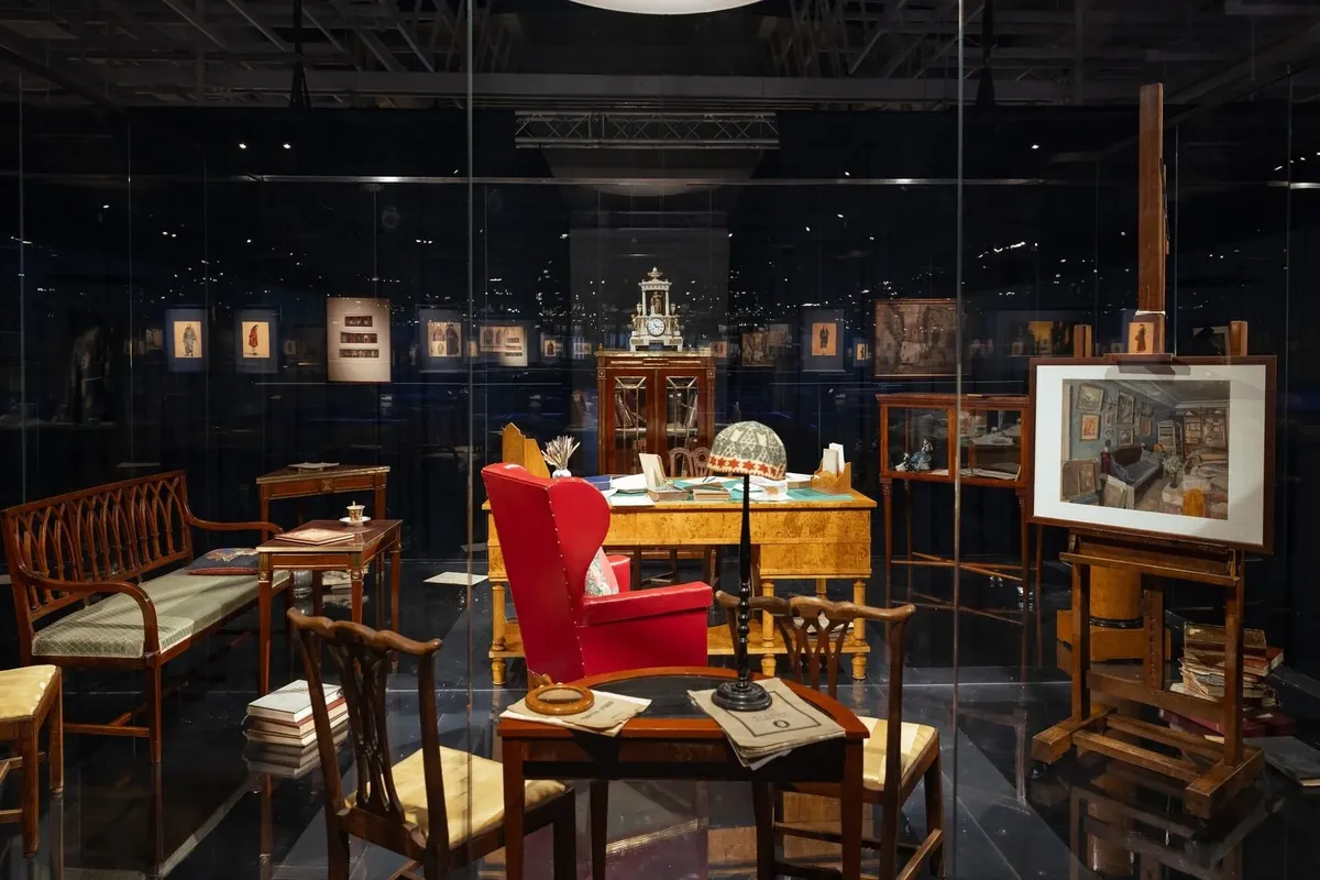 «Экспонаты для кабинета нам предоставил Музей семьи Бенуа из Петергофа, — рассказал Евгений Дединкин, сокуратор выставки. — Но мы не стремились воссоздать конкретный кабинет из его квартиры или мастерской либо рабочий кабинет в Большом театре, Эрмитаже. Мы хотели показать кабинет как метафизическое пространство, вобравшее в себя все ипостаси личности и творчества Бенуа».