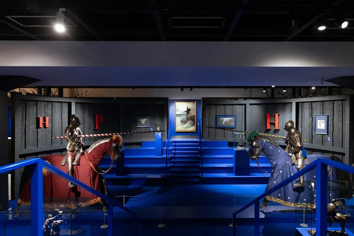 Буква Н означает «Нападение», и в этом разделе представлена скульптура Евгения Лансере-старшего (муж Екатерины, родной сестры Александра Бенуа): «Витязь», «Джигитовка». Здесь же появляется и тема детских игр в индейцев. А рядом, на букву Р, навстречу друг другу скачут «Рыцари» — фигуры из Рыцарского зала Эрмитажа.