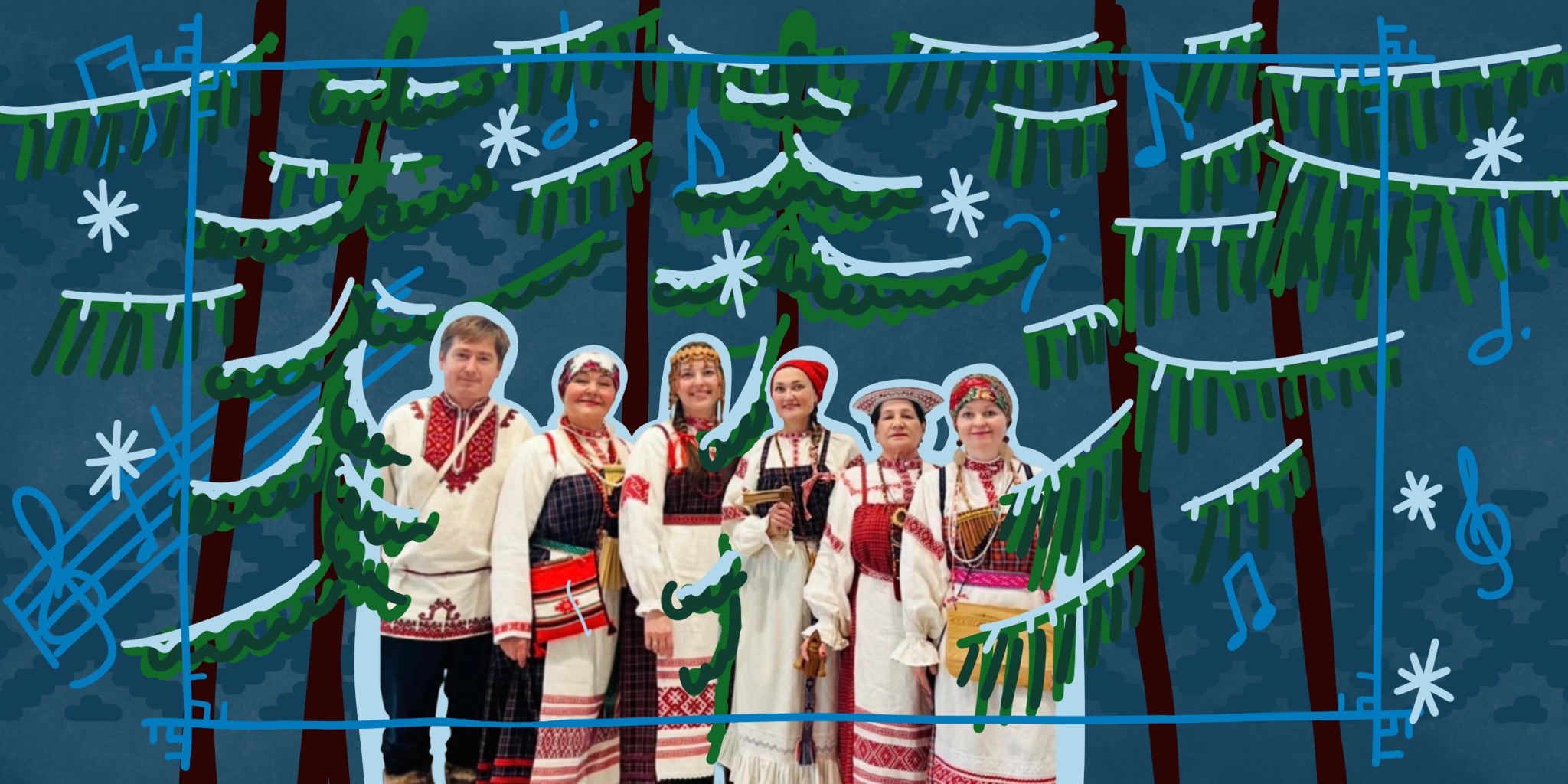 Сегодня состав ансамбля варьируется. Помимо женщин – двух Татьян, Натальи и Светланы – в нём участвуют двое мужчин: мариец Виталий и их общий с Натальей сын Доминик. Одна из участниц, коми-пермячка Ирина, присоединяется к коллективу на концертах в Финляндии.