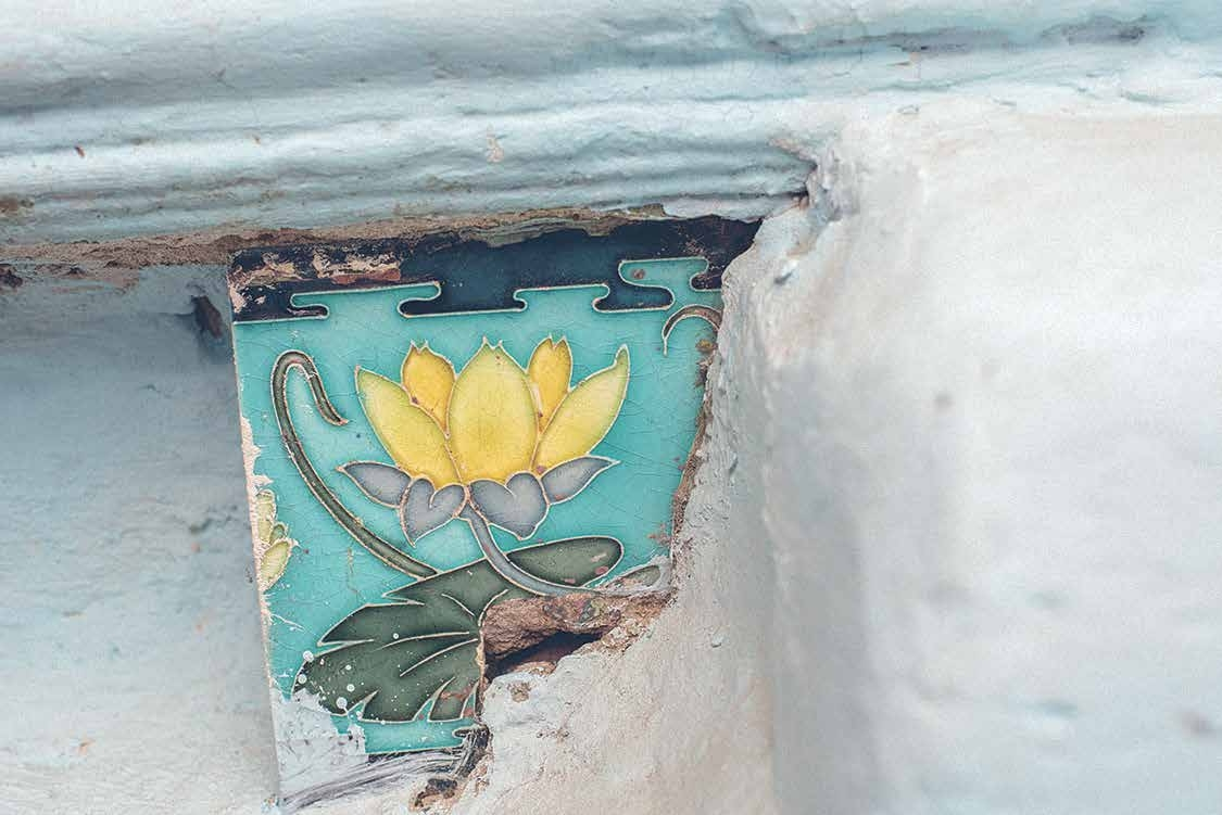 Плитка с кувшинками в подъезде доходного дома на 18-й линии В. О. в Санкт-Петербурге © Ксюша Сидорина