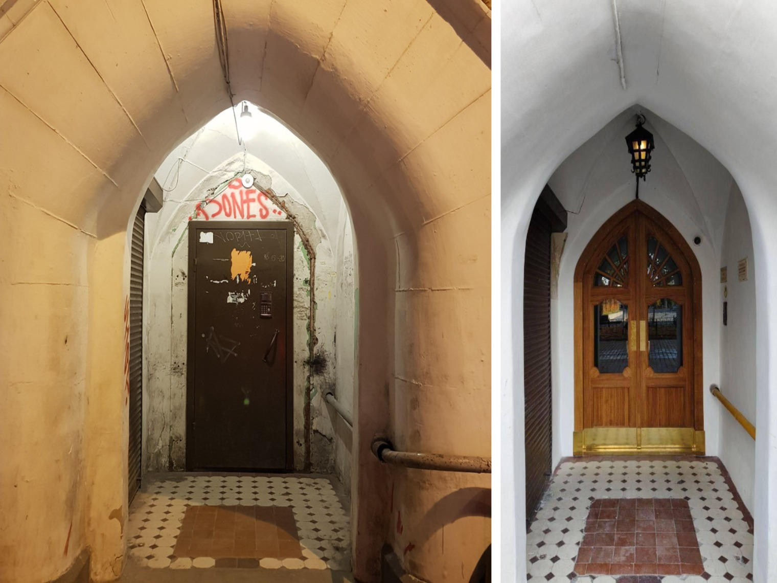 Двери Дома акционерного общества «Арина» до и после реставрации © Алексей Храмов, Фонд «Внимание»