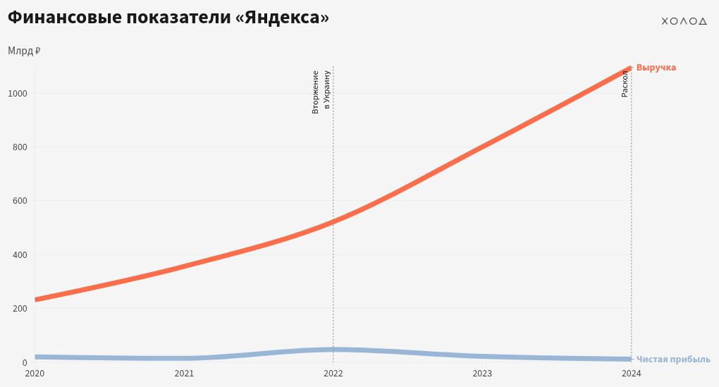 Раскол «Яндекса» положил конец амбициям компании стать глобальным игроком в сфере технологий: ключевые партнеры дистанцировались от нее, а ее капитализация в кризисный период упала более чем в четыре раза — с 30 миллиардов долларов до 6,8 миллиарда.