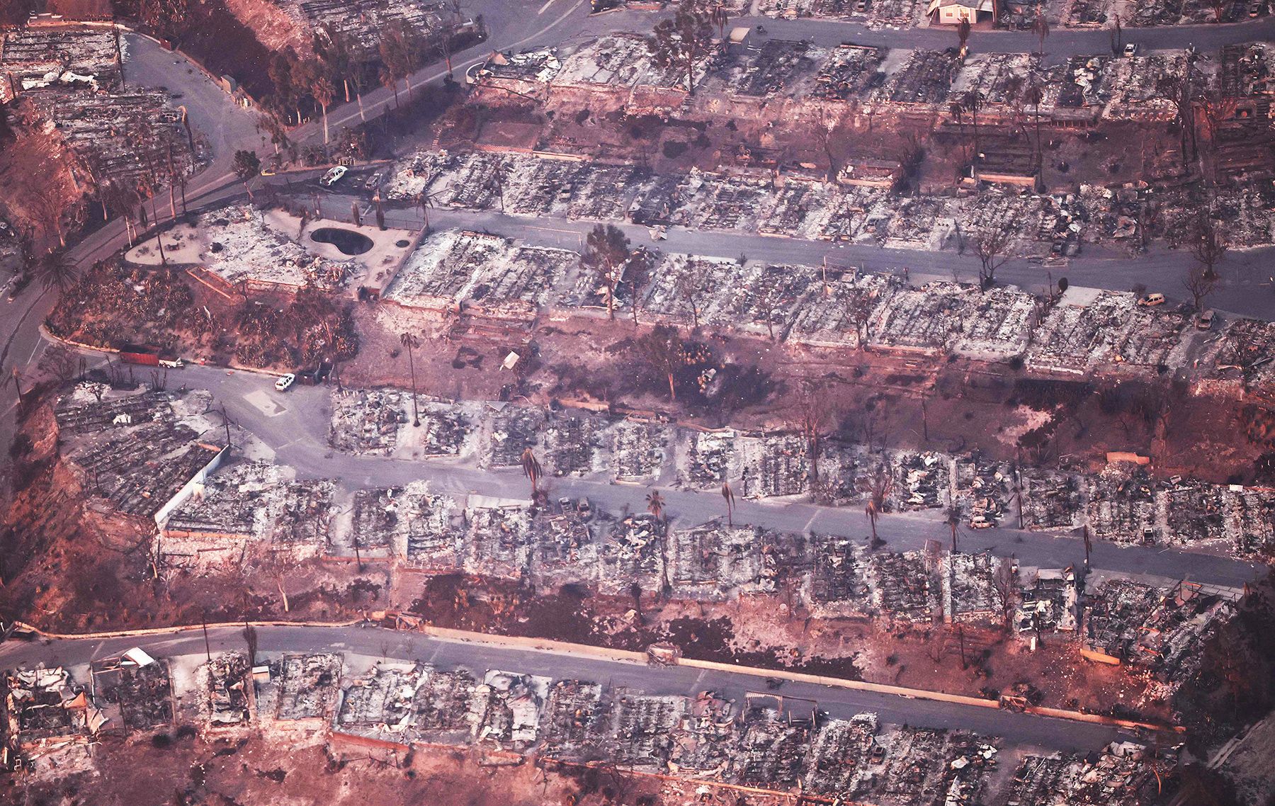 После пожаров десять местных архитектурных студий вызвались проектировать дома для людей, оставшихся без крова (впрочем, этим проектам пока далеко до сдачи). Кроме того, компания Cosmic Buildings открыла роботизированный завод, где планируют делать модульные детали для домов, которые можно будет собрать как конструктор. Этих инициатив явно недостаточно: на свежих спутниковых снимках видно, что город восстанавливается медленно; первый дом в Пасифик-Палисейдс вновь открыли только в ноябре. Многие выгоревшие участки спустя почти год по-прежнему пустуют.