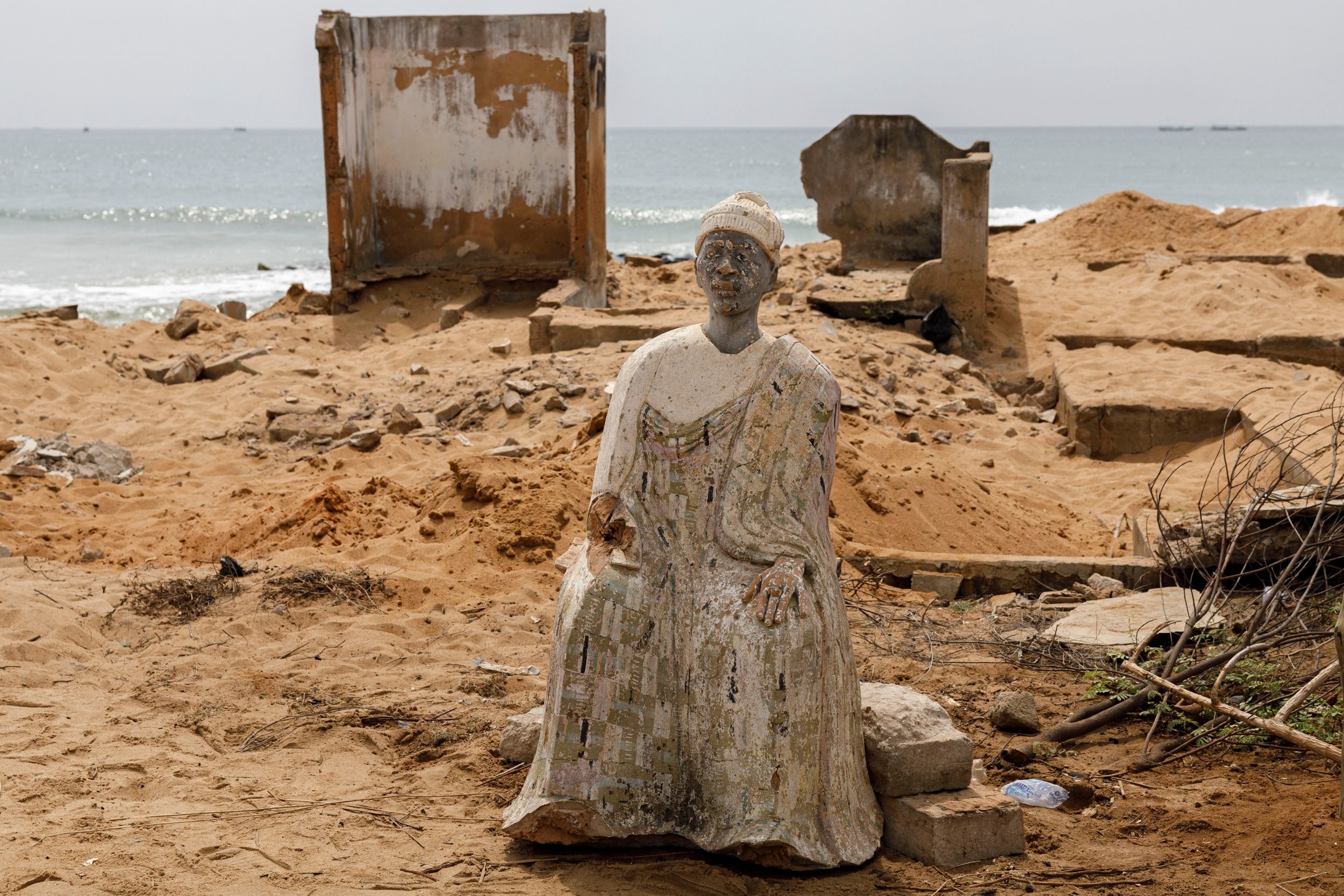 На побережье Республики Конго эрозия становится не только экологической, но и культурной проблемой: вместе с берегом там уходит материальная память о прошлом. Сильные атлантические течения уже серьезно повредили здания колониальной эпохи и работорговый пост — исторический памятник, стоящий на песчаных обрывах бухты. Местных жителей беспокоит, что в море исчезают могилы их предков.