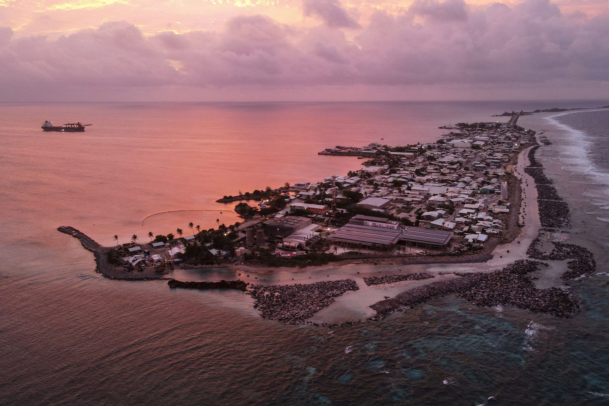 Но особенно беззащитны перед эрозией островные государства. Многие из них расположены на плоских коралловых атоллах и узких песчаных косах, где даже из-за небольшого подъема уровня моря вода быстро съедает сушу.