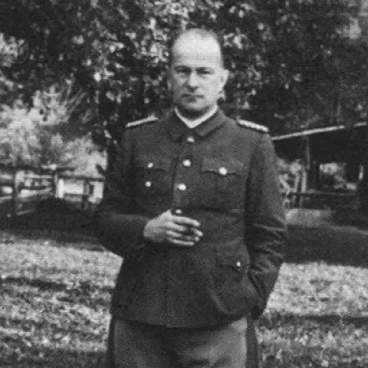 «По национальности — немец, одевался в черное пальто морской формы, носил китель черного цвета, на погонах никаких знаков различия не носил, одевал форменную фуражку морского офицера, носил кожаные ботинки, роста ниже среднего, примерно 50 лет, лысый, лицо чистое, брови белые».