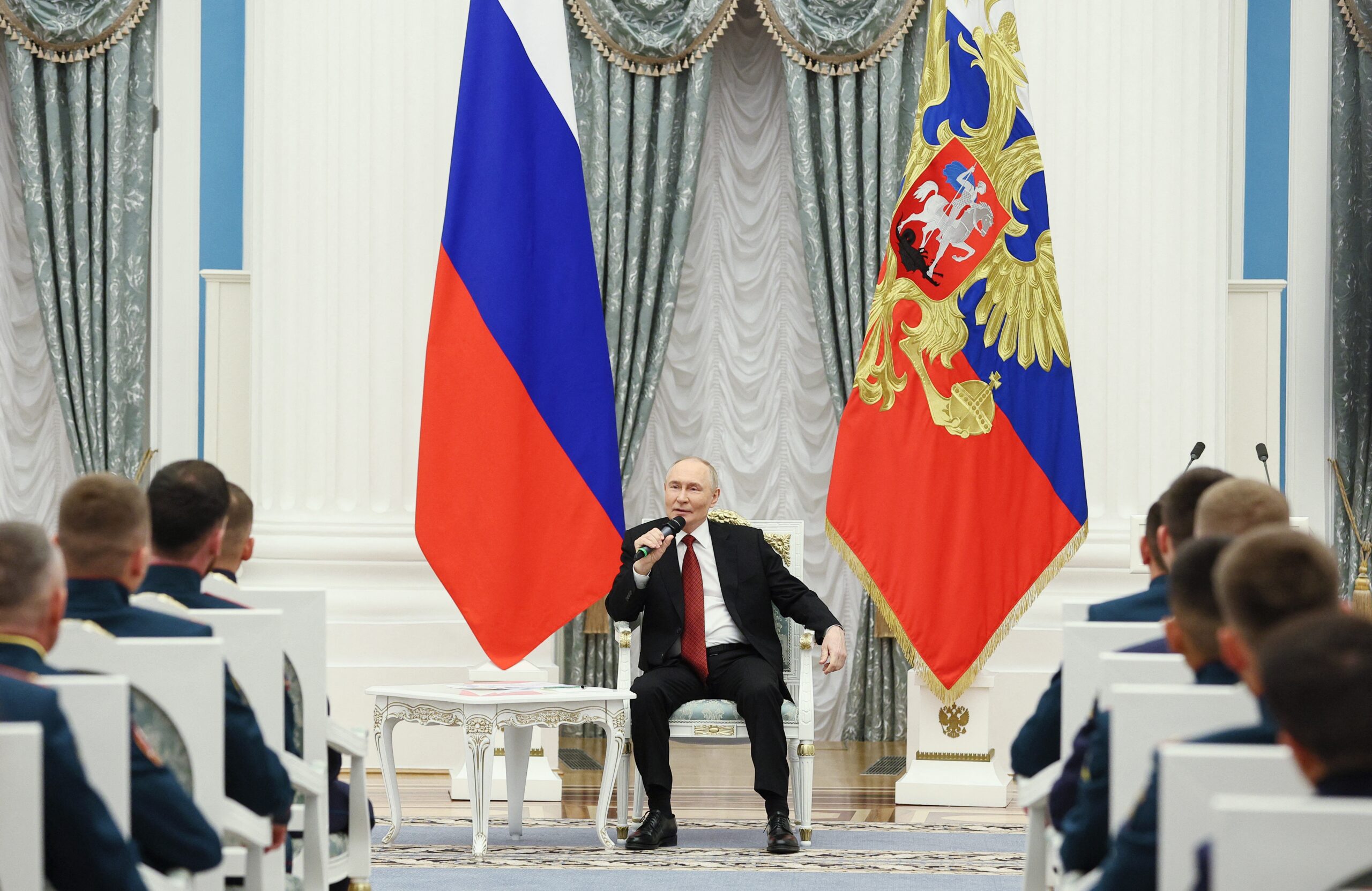 Фото: Владимир Путин встречается с участниками программы «Время героев» в Кремле, 12 июня 2025 года. Sputnik/Sergei Bulkin/Pool via REUTERS