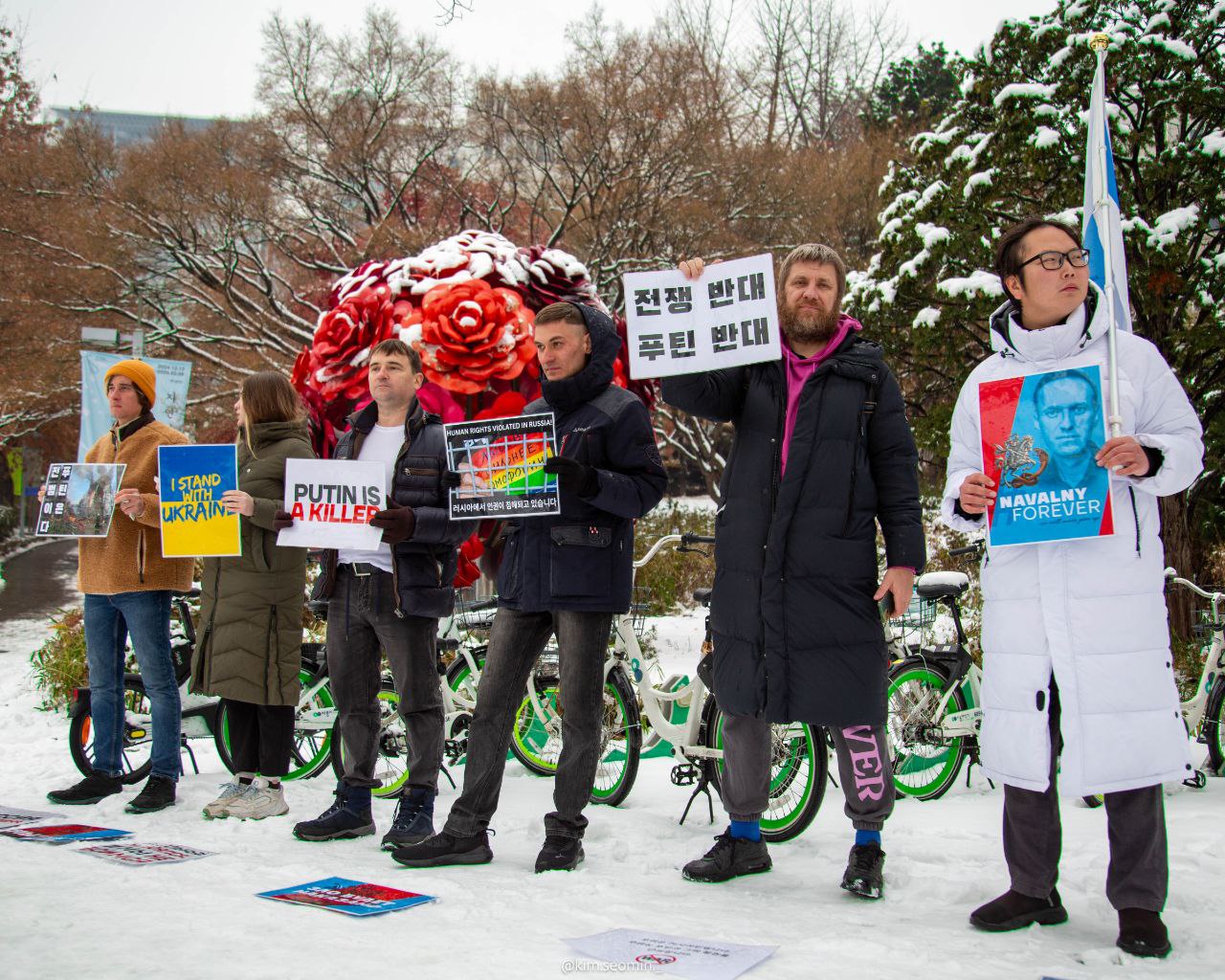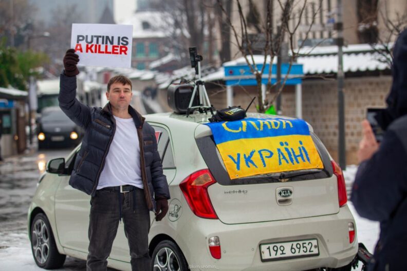Активничать Александр продолжил и в Сеуле. Каждую неделю он вместе с единомышленниками выходит на антивоенную акцию.