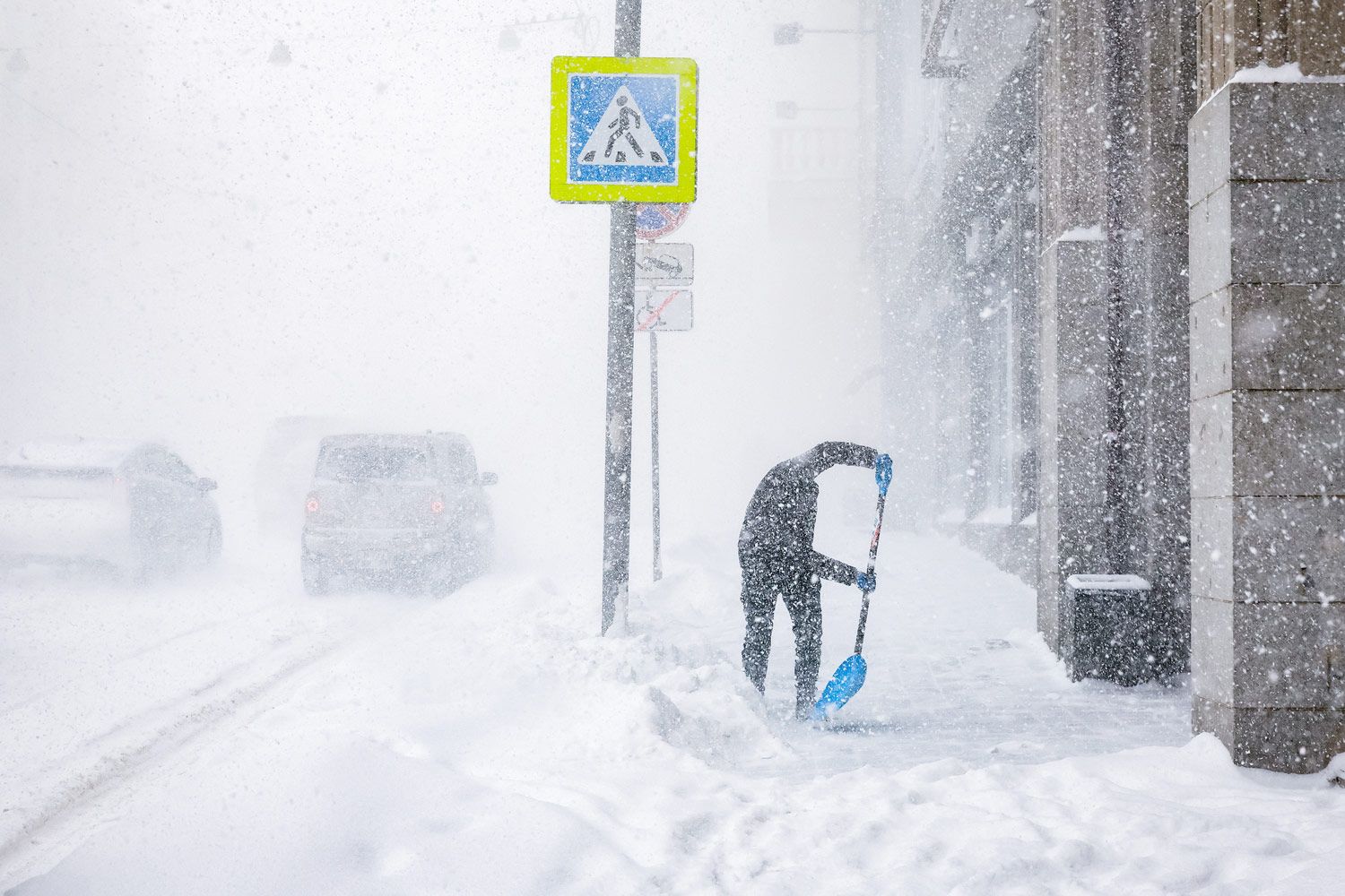 Yuri Smityuk / TASS / ZUMA Press / Scanpix / LETA A woman photographed in a snowbank in Vladivostok. January 10, 2026.Yuri Smityuk / TASS / ZUMA Press / Scanpix / LETA A man shovels a city street in Vladivostok amid strong winds and heavy snowfall. January 10, 2026. Yuri Smityuk / TASS / Profimedia Vladivostok. January 10, 2026.