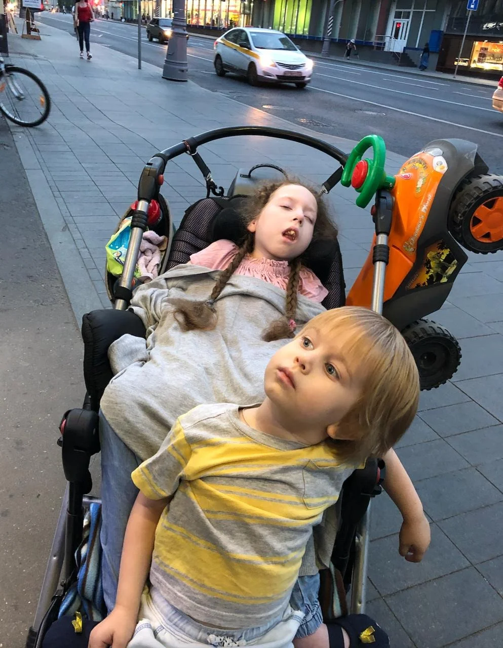 Конечно, тяжело было чувствовать внимание людей. Сначала она была маленькая, и люди обращали внимание, что она много кричала и плакала. А потом стали оборачиваться. Кто-то периодически говорил: «Почему она не ходит, такая большая?» Она же долгое время выглядела, как здоровый ребенок, если спит, то вообще никаких отличий. Потом постепенно, конечно, стали появляться уже какие-то искривления, зубы начали торчать. Но долгое время ничего такого не было. Мне было тяжело выносить эти взгляды людей.