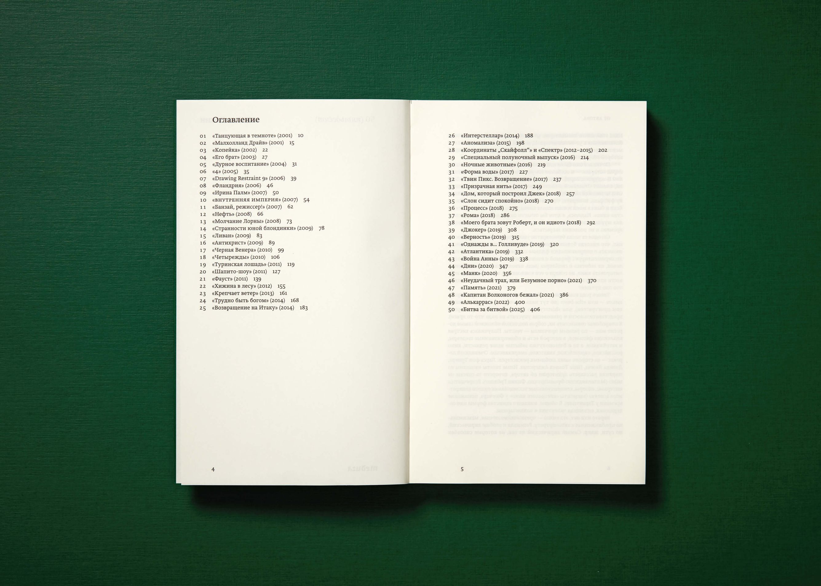 Такого рода компиляции обычно строятся по одному из принципов — или «the best» (но тут нельзя доверять автору, он слишком пристрастен), или «history» (но в этом случае есть риск ради представительности и равновесия упустить из вида что-то яркое). Я попробовал совместить их, собрав под одной обложкой самые дорогие мне — по разным причинам — тексты. Получилась пестрая коллекция фильмов, в которой есть и общепризнанные шедевры, и затейливые, а то и благополучно забытые ныне редкости, кино российское, европейское, азиатское, американское. Очевидный перевес — на стороне моих любимых режиссеров: Ларса фон Триера, Дэвида Линча, Пола Томаса Андерсона. Иные тексты написаны из желания рассказать аудитории об авторе, которого та совсем не знает (Микеланджело Фраммартино, Филип Грёнинг). Встречаются интервью, обзоры, концептуальные исследования одного конкретного аспекта (элементы «авторского кино» у Финчера, понимание времени у Тарантино). В общем, никакого единства формы или содержания, сплошная эклектика и волюнтаризм.