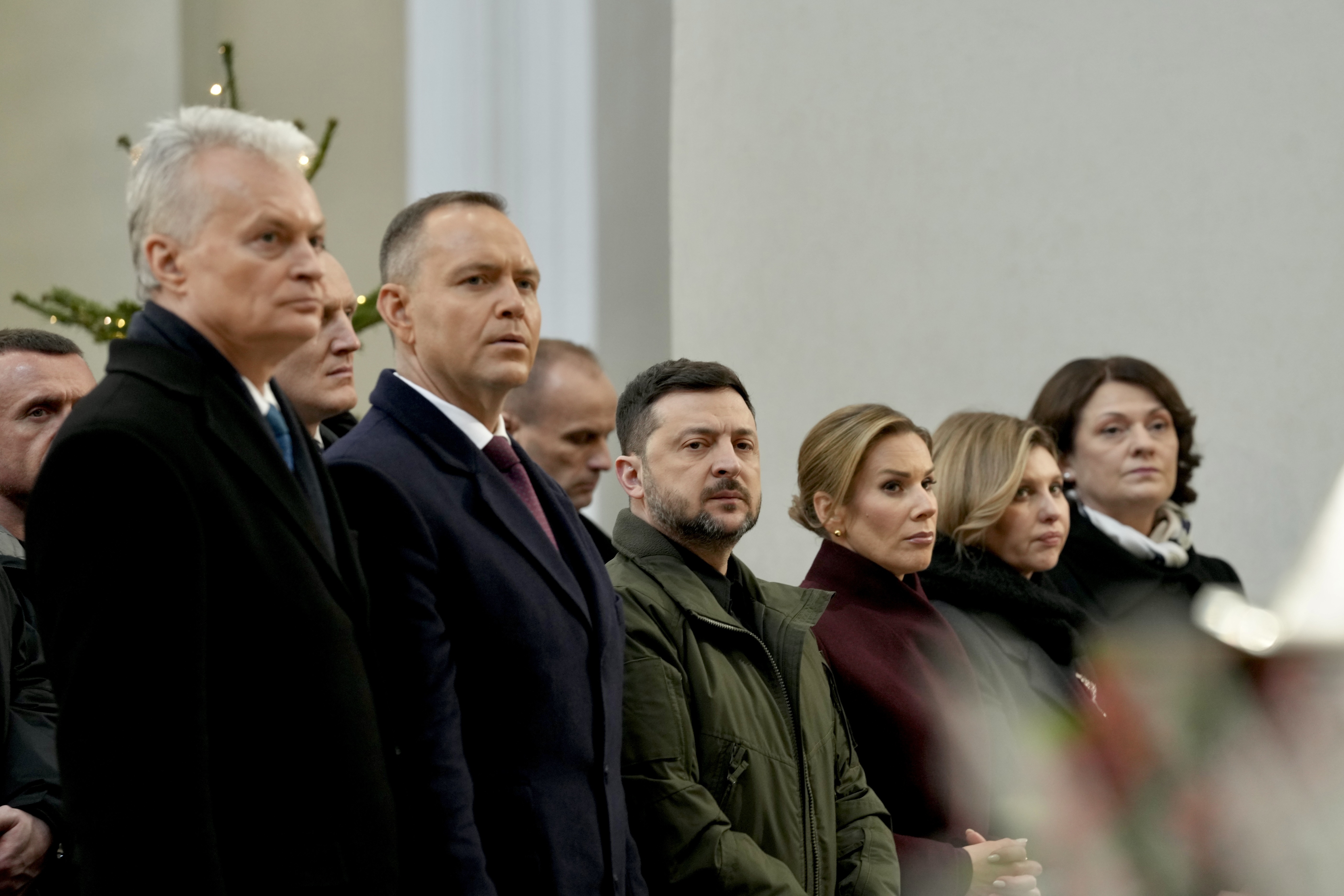 Prezydenci Polski, Litwy i Ukrainy wraz z Małżonkami biorą udział we Mszy Świętej w Archikatedrze Wileńskiej. pic.twitter.com/ulotnekzn3