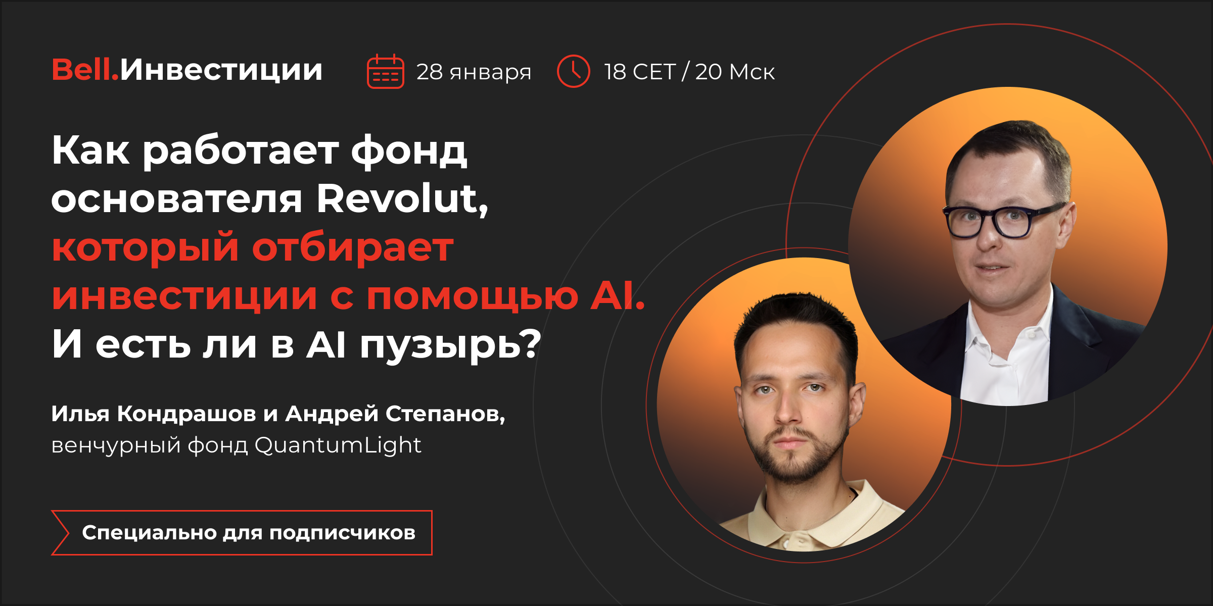 Искусственный интеллект в 2026 году остается главной темой для инвесторов. Мы решили посвятить ей первый в этом году вебинар для подписчиков рассылки «Bell.Инвестиции» — и позвали выступить на нем людей, которые уже несколько лет применяют эту технологию для зарабатывания денег. Речь о фонде Quantum Light, который вместе с предпринимателем Ильей Кондрашовым придумал основатель Revolut Николай Сторонский. Фонд уже несколько лет использует данные и машинное обучение для отбора компаний на поздних стадиях.