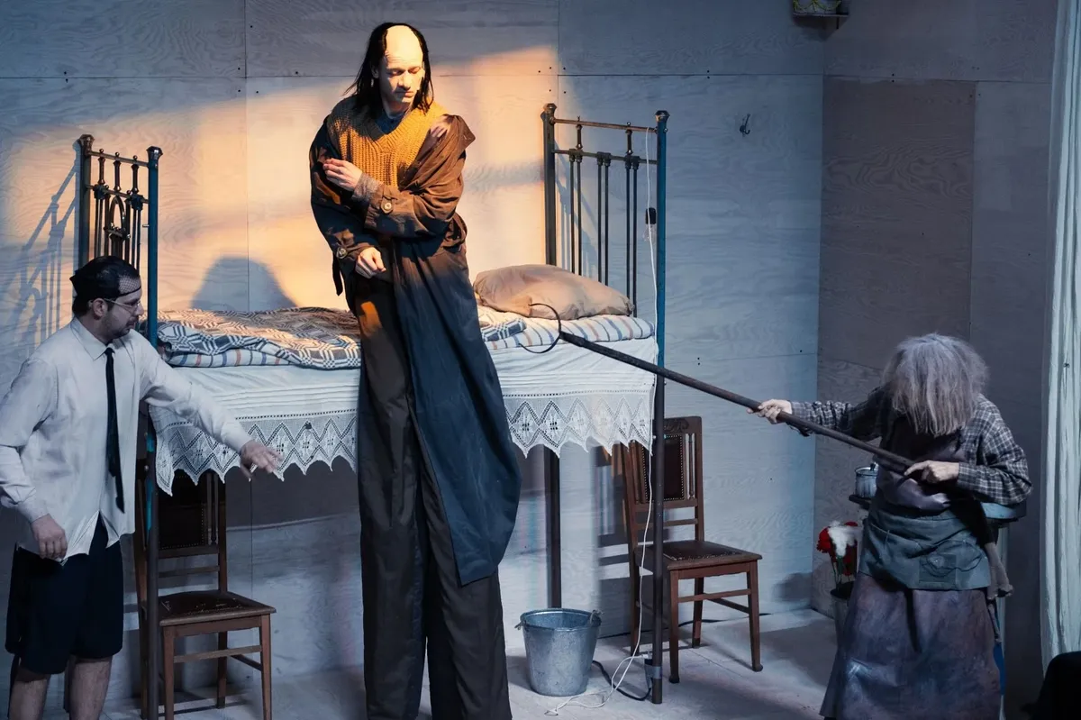 Каждый спектакль Федорова — подзатыльник самодовольному упитанному всезнайству. Все с чистого листа. Раздражает (кого-то бесит) на грани фола. Все с плюсом, чересчур. Мейерхольдовское пиршество формы, маскирующей хрупкость самой повести. Сочувствие высекается от противного, порой из отторжения. Здесь никто не приятен во всех отношениях. И всех жаль. Концентрат человеческих проявлений. Нелепая пластика, Наталья Рычкова (она играла мадам Бовари) — хозяйка и нянька лохматая — словно испорченная кукла с заевшим заводом. Портной Петрович, как жирный Мефистофель с наклеенными глазами, зловеще вырастет из зингеровской швейной машинки, в которой полыхает огонь камина. К нему с пальчиком, торчащим из незашиваемой дыры в протертой шинели, и бредет на своих деревянных ногах через весь Петербург Акакий. А когда мосты разведут, идет по воде, яки по суху. Через безобразное, сквозь внешние углы уродства прорастает эмпатия и нежность, тщетность усилий маскирует христологическое начало.