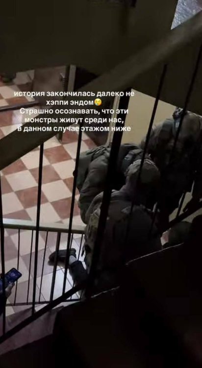 «Около половины третьего ночи он сказал: «Все, я сдаюсь» и вышел [из квартиры]. Полицейские забегают — она уже задушенная», — рассказывает Соболев со слов очевидцев.