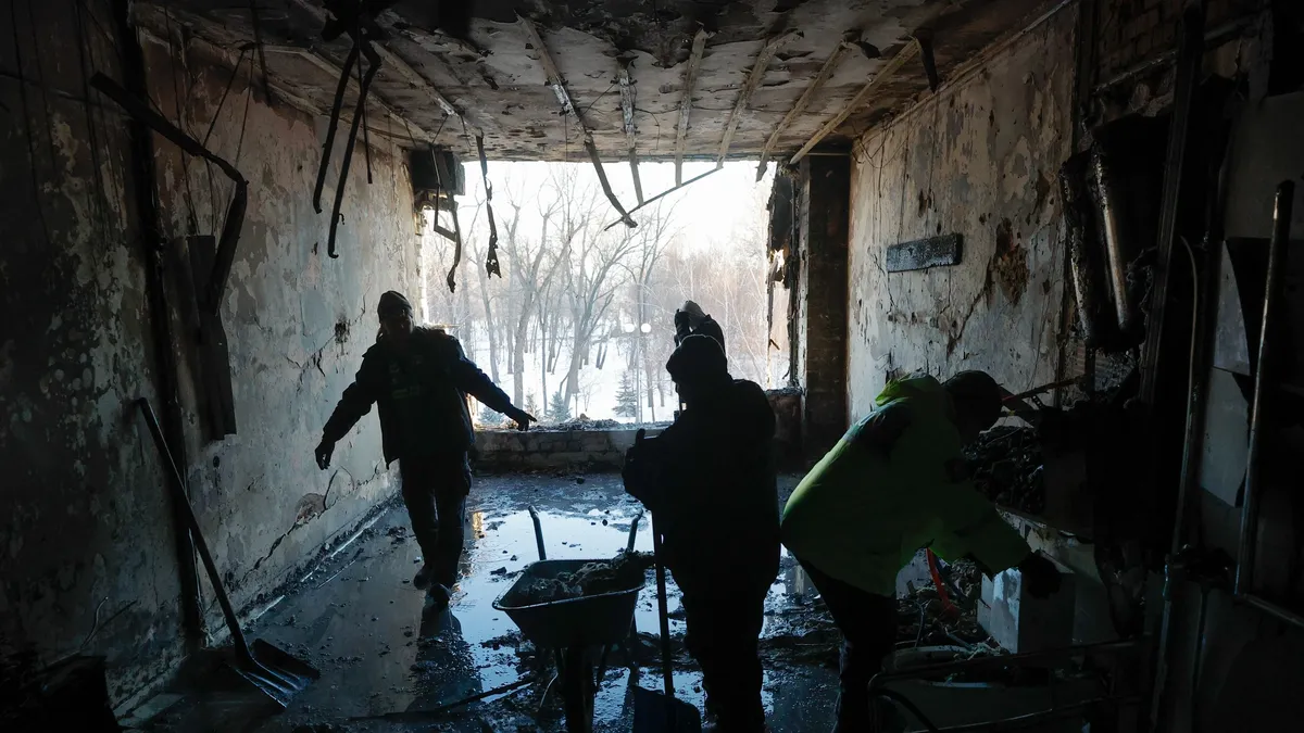 Ukrainians clear debris from the site of a Russian drone strike on a medical clinic in Kyiv, Ukraine, 5 January 2026. Photo: EPA / Sergey Dolzhenko
