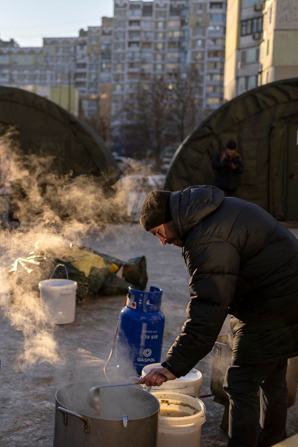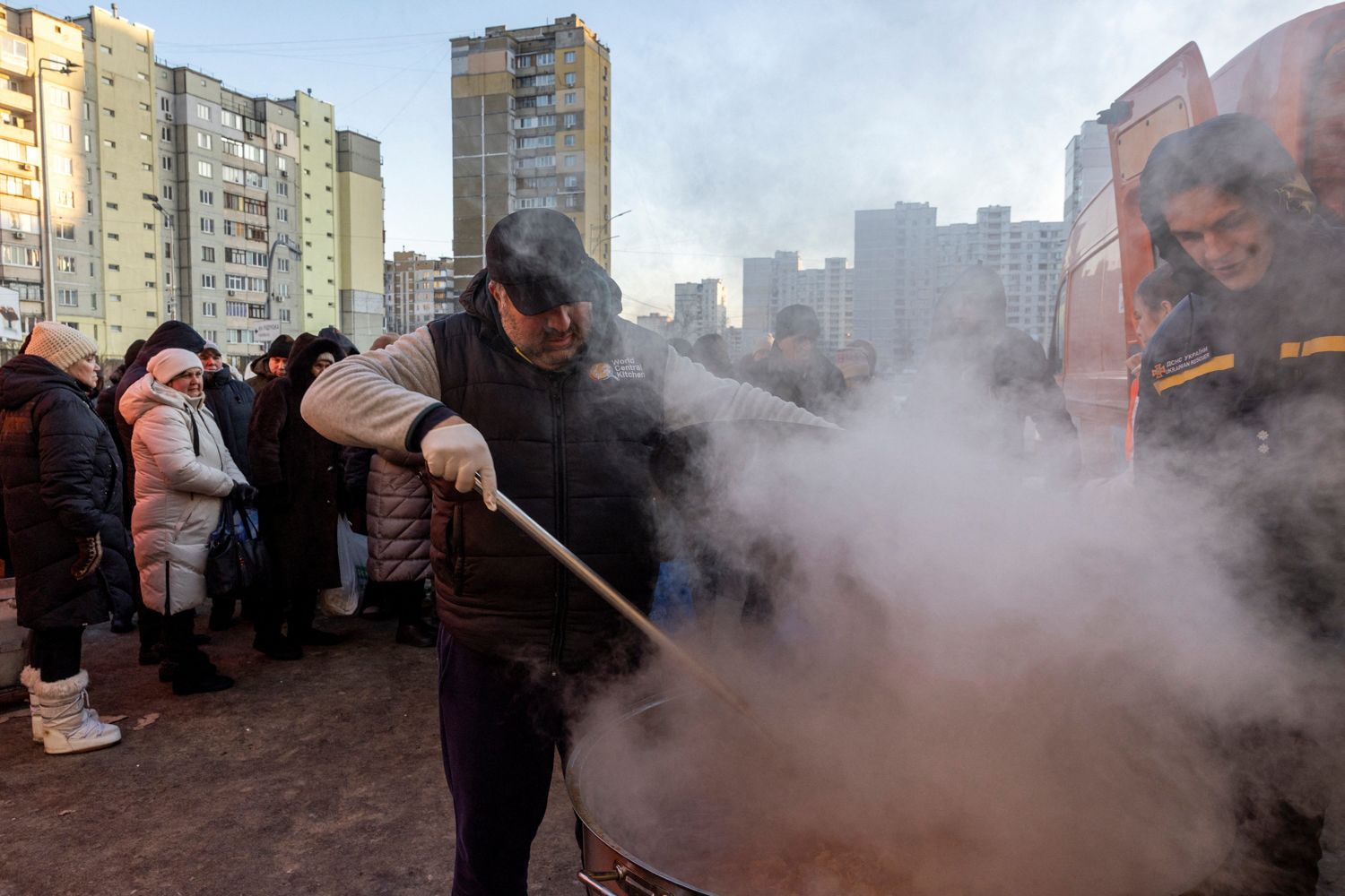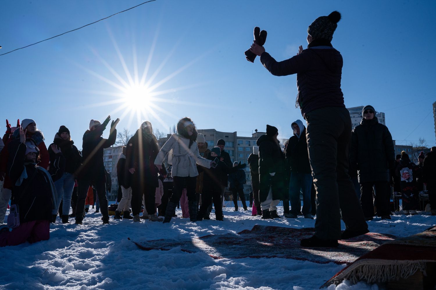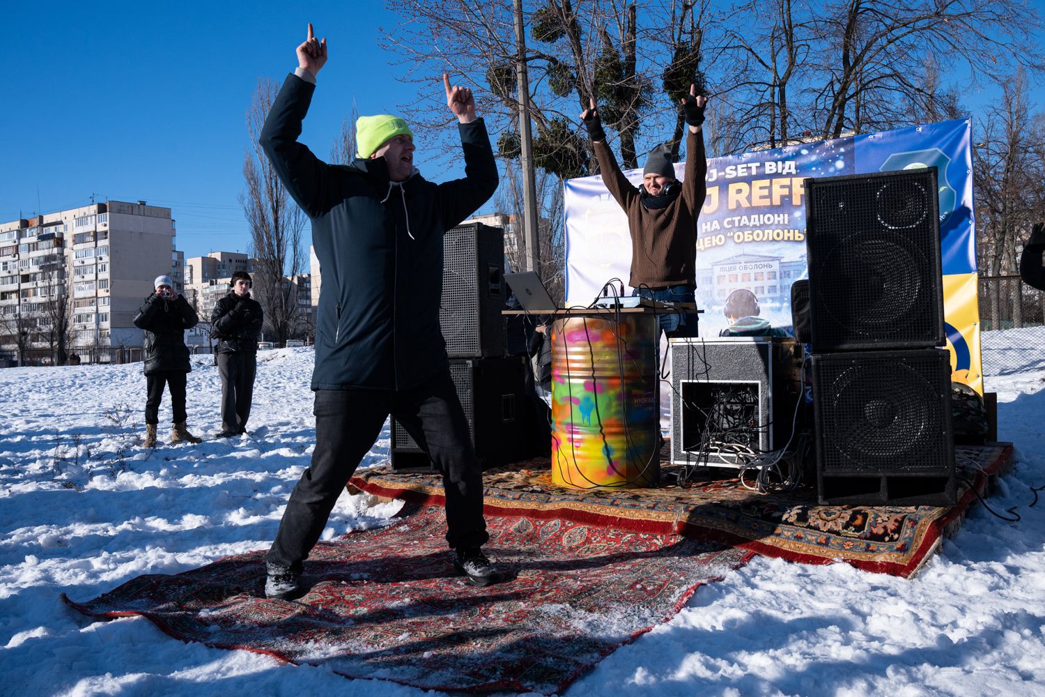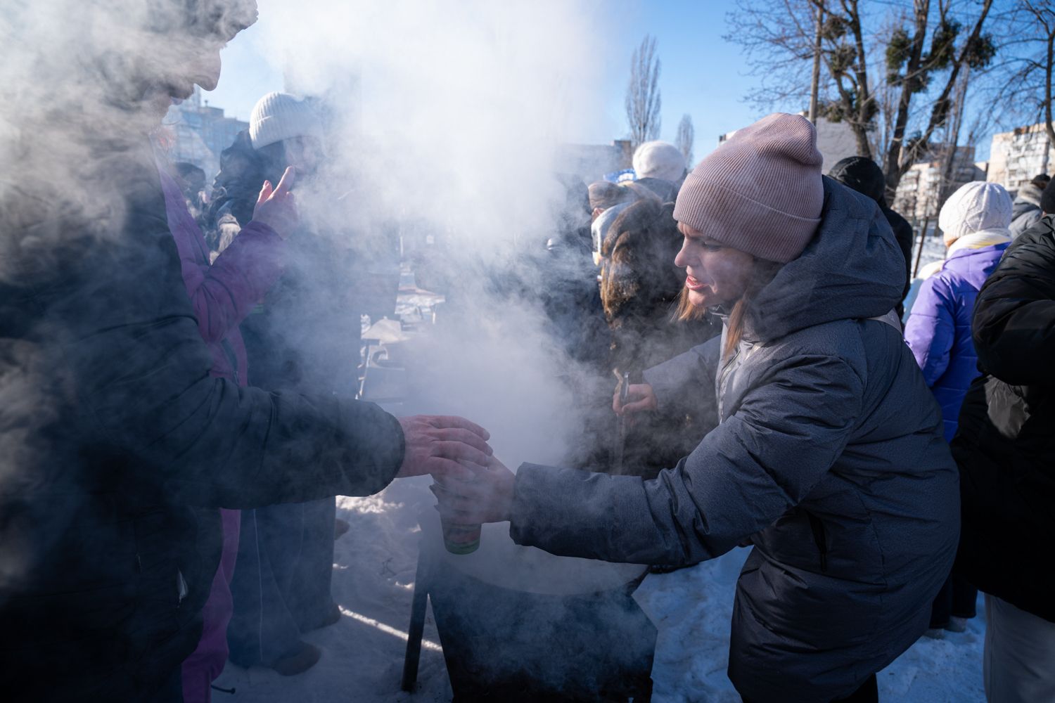 Многие жители Киева из-за российских ударов по энергетической инфраструктуре неделями живут без электричества и отопления в условиях сильных морозов. Чтобы поддержать друг друга, соседи организовывают активные мероприятия прямо во дворах — проводят совместные зарядки и даже вечеринки с участием диджеев. Там же волонтеры раздают горячую еду и чай.