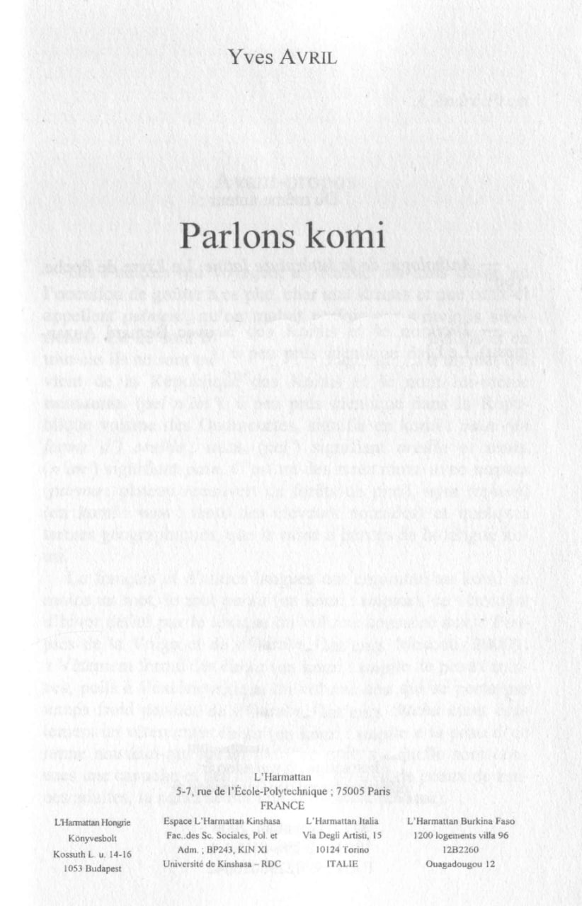 Ив Авриль (1937-2025): француз, автор и лингвист, написавший «Parlons Komi» («Говорим на коми»), всеобъемлющее грамматическое руководство и учебник для самообучения коми языку через французский. По имеющимся данным, также изучал финский, эстонский и удмуртский языки и перевел эпическую поэму Каллистрата Жакова «Биармия» на французский язык.