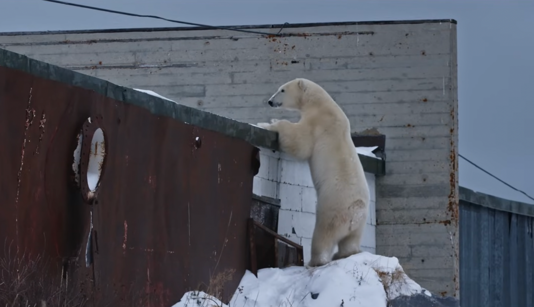 «Это история назойливого медведя. „Avinnaarjuk“ на языке инуитов, — говорит в начале фильма пожилой рассказчик. — Медведь — гость из прошлого, попавший в лабиринт настоящего». Канадский город Черчилл неофициально называется мировой столицей белых медведей: в отличие от соседских инуитских городов, охотиться здесь запрещено, зато сюда в огромных количествах приезжают туристы. Вооруженные камерами и телефонами, они стараются слушать гидов и не очень шуметь — медведи очень чуткие, — но все-таки их любопытство неизбежно стирает границу между миром людей и миром животных. Хотя раньше эта граница, по словам инуитского рассказчика, была залогом безопасности тех и других.
