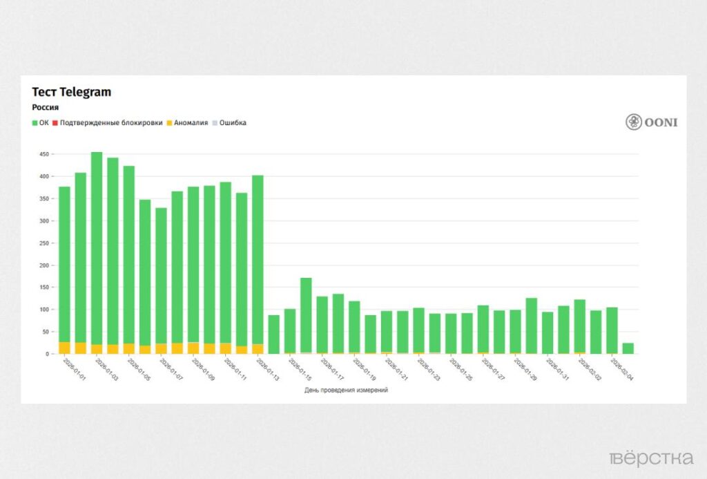Платформа открытых данных об интернет-цензуре OONI Explorer c середины января показывает улучшение в работе Telegram на территории России, заметила «Вёрстка».