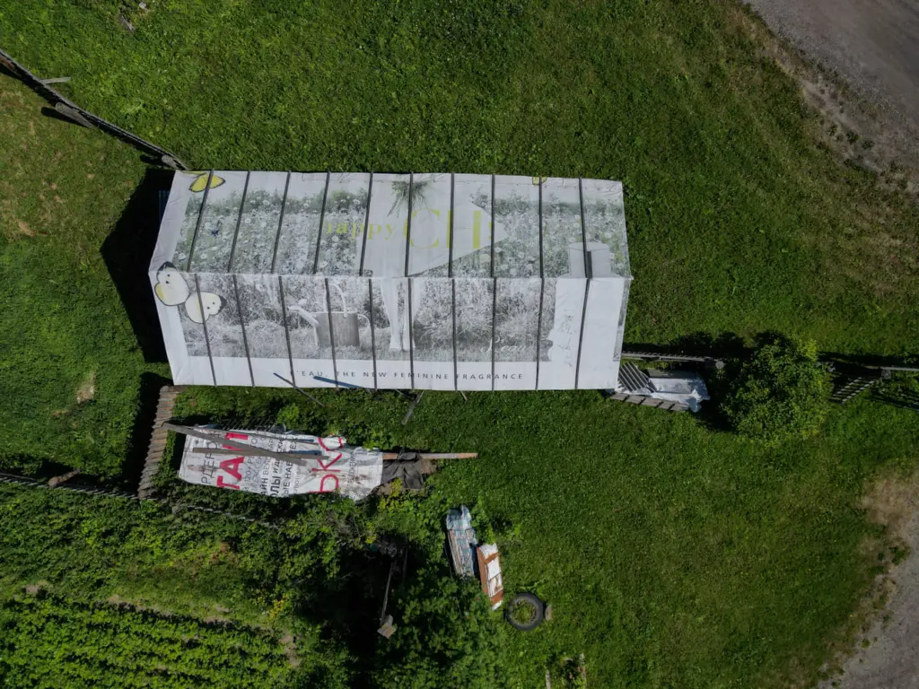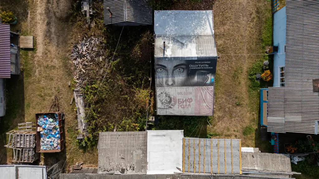 — Представьте, что вы парите над одной из деревень Русского Севера. Крыши домов покрыты рекламными баннерами — McDonald’s, IKEA, Tide, Milka. На первый взгляд — будто странный ритуал, разновидность карго-культа. Но объяснение куда прозаичнее: смекалка. Местные покупают списанные баннеры — дешёвый, прочный и водонепроницаемый материал — не ради моды или художественного акта: это практичный способ починить крышу. Кто-то использует баннеры и как скатерти, мы видели подобное в деревне Ворзогоры — на «скатерти» была реклама кандидата в депутаты архангельского Заксобрания. Хозяин дома рассказал, что баннеры стоят от 800 до 2000 рублей за штуку, одного хватает на четыре скатерти или крышу. Покупают их на складах компаний, занимающихся уличной рекламой: заказчики часто не забирают баннеры после демонтажа.