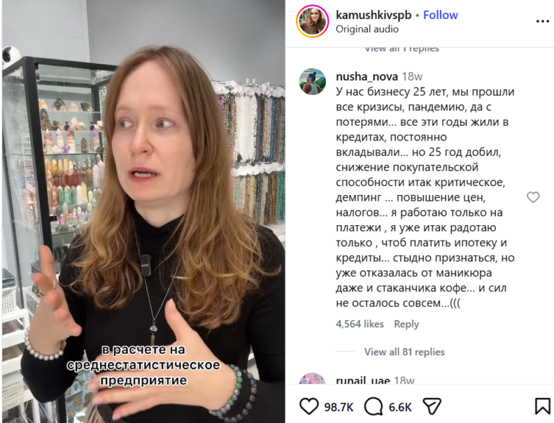 «А что делать, ребят? Типа выйти на улицы протестовать — тюрьма. Записывать видео с реальным мнением — тюрьма. Поэтому и выбирают многие хотя бы иллюзию свободы. Честно, я плачу вместе с вами, автор». Так тренер йоги ответил на видеовладелицы мастерской-магазина украшений, в котором она плакала в отчаянии.