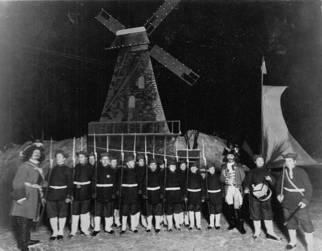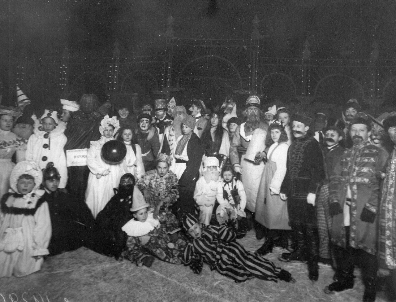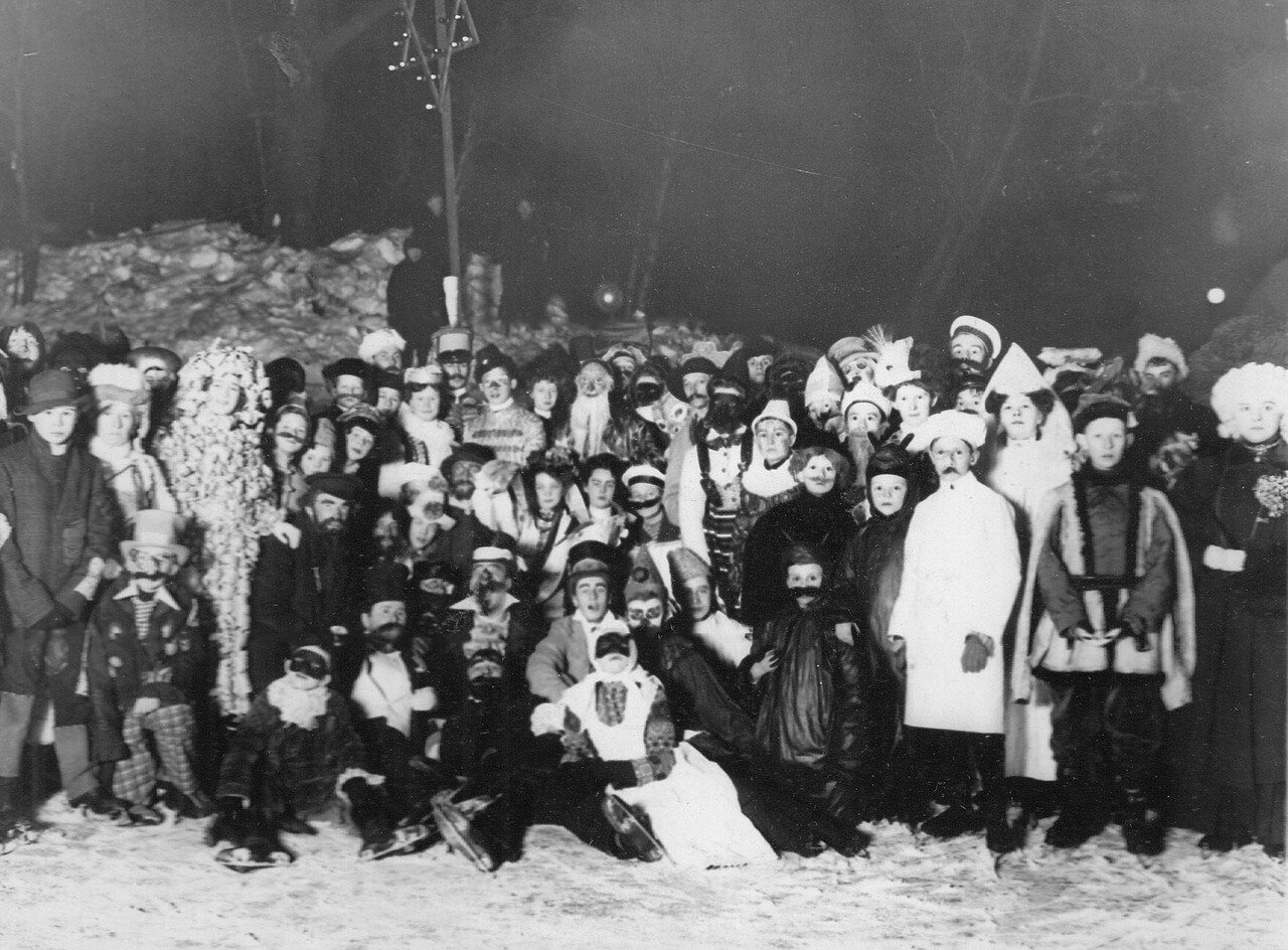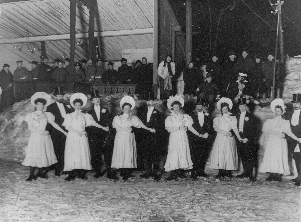 На этих (довольно странных) фотографиях — костюмированные балы Санкт-Петербургского общества любителей бега на коньках. В целом с коньками петербуржцы были знакомы с момента основания города, моду на эту забаву Петр I привез из Голландии. Но только в 1860-х годах любители стали объединяться в кружки. Сперва они собирались под эгидой Петербургского речного яхт-клуба, всё равно организация не могла нормально работать в зимнее время. А в 1877-м возникло и отдельное общество любителей бега на коньках. Именно ему городские власти передали в управление зимние катки на прудах Юсуповского сада. На общество легли обязанности по поддержанию в порядке льда, организации катаний, устройству буфетов, ограждений и раздевалок.