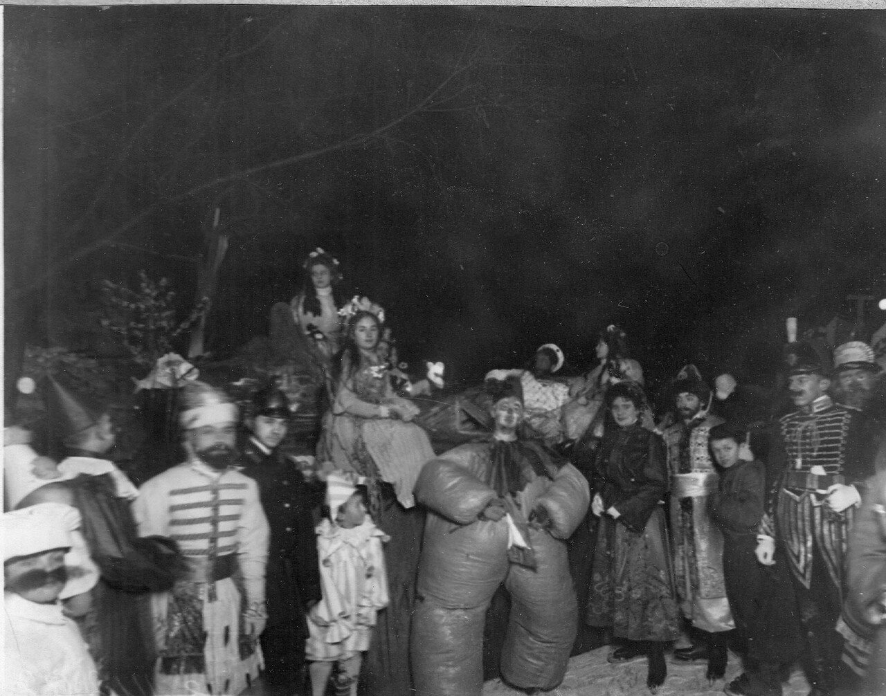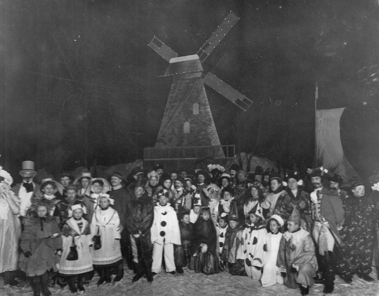Большинство источников датирует снимки с маскарадов периодом с 1900 по 1908 год, реже указывая конкретнее — канун нового 1902 года. Уверенности в том, что это правильная датировка для всего набора снимков, нет, но в том зимнем сезоне Юсупов каток действительно был особенно многолюдным. Согласно газетам, в конце декабря 1901-го грянула оттепель и задул сильный юго-западный ветер, он нагнал воду с Финского залива в невскую дельту, затопив катки на льду рек и каналов. Так что на праздники катки на прудах остались единственными доступным вариантом для желающих покататься.