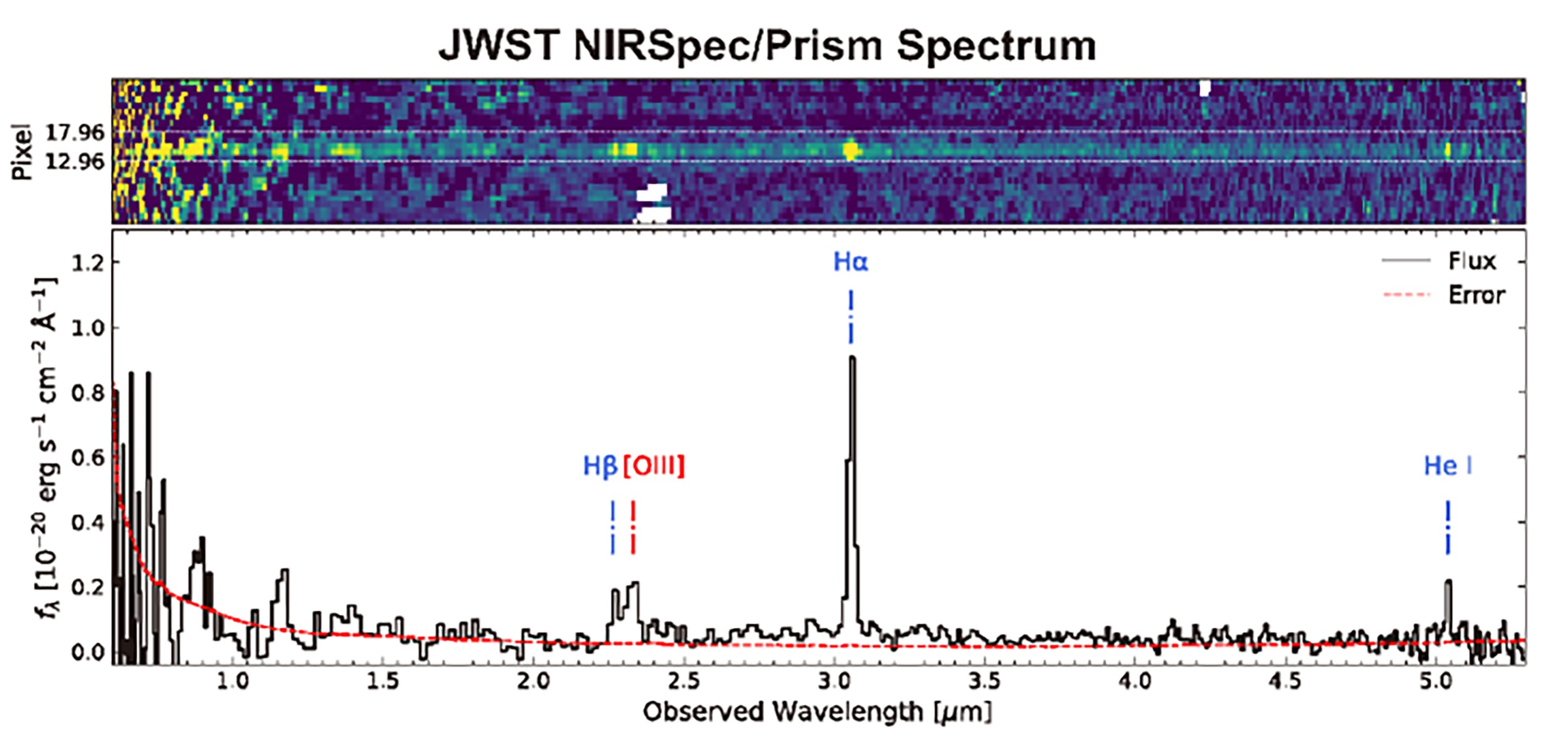 Спектроскопические наблюдения в инфракрасном диапазоне позволили детально исследовать ионизованный газ в галактике CAPERS-39810 и измерить интенсивности эмиссионных линий кислорода, азота и неона. Выяснилось, что содержание кислорода в ней составляет лишь доли процента от солнечного. При этом наблюдаются признаки активного звездообразования, что само по себе представляет интерес: формирование массивных звезд в среде с таким химическим составом существенно отличается от процессов, характерных для галактик с более длительной эволюцией.