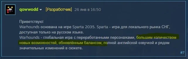 Для понимания, после релиза «Спарты» в ней обнаружилось множество багов, да и покупать за 900 рублей игру уровня мобильных стратегий 2010-х годов… Но, что интереснее, нашлась другая игра, точь-в-точь похожая на нее. Разработчик прямо пишет, что Warhounds — это исправленная версия «Спарты», только сделанная на экспорт.