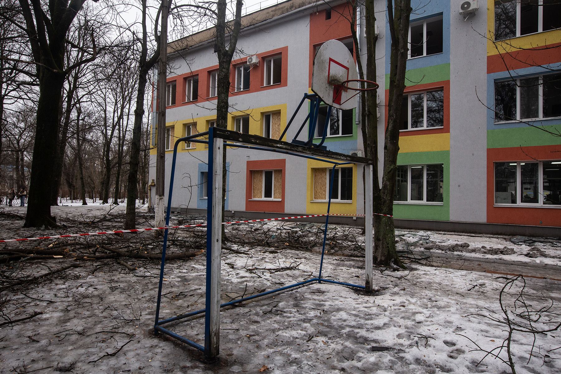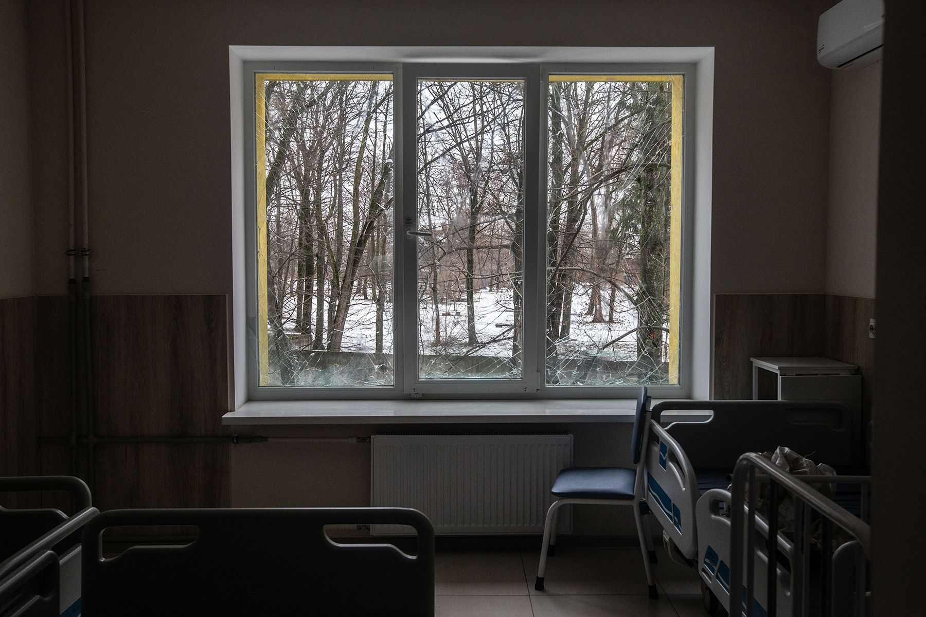13 февраля российские дроны атаковали здание детской больницы в Сумах. В результате никто не пострадал, дети и персонал во время удара находились в укрытии. На фото — замена выбитых в здании окон.