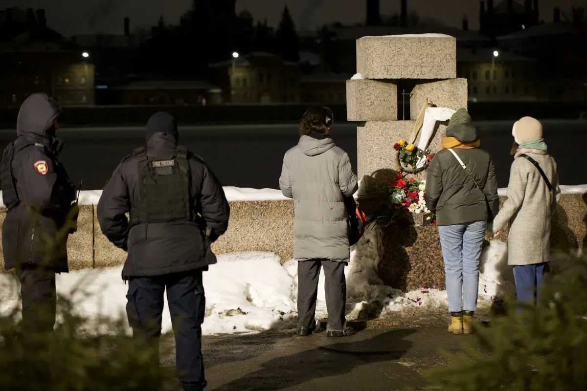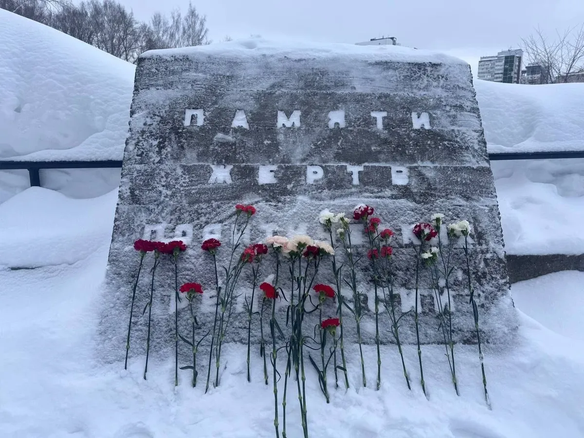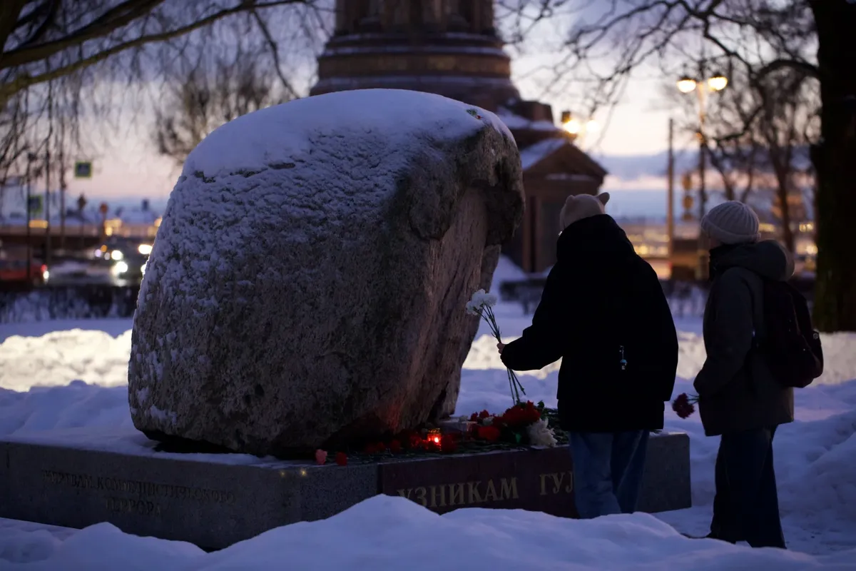 Мама Алексея Навального (крайняя справа) и мама Юлии Навальной (на первом плане) у могилы. Фото: Александр Земляниченко / AP / Scanpix / LETA2Москва, Борисовское кладбище. Фото: Светлана Виданова / «Новая газета»Москва, Борисовское кладбище. Фото: Светлана Виданова / «Новая газета»Москва, по пути к Борисовскому кладбищу. Фото: Светлана Виданова / «Новая газета»Центр Москвы, Лубянская площадь, Соловецкий камень. Фото: соцсетиМемориал жертвам политрепрессий на Воскресенской набережной власти Петербурга решили именно сегодня отгородить от людей забором и строительной техникой. Фото: МР7Открыли проход только вечером. И сюда принесли цветы. Фото: Алексей Душутин / «Новая газета»Петербург, Соловеций камень на Троицкой площади, еще один памятник жертвам политических репрессий. Фото: Алексей Душутин / «Новая газета»Петербург. У памятника Андрею Сахарову сегодня свежий цветок. Фото: Алексей Душутин / «Новая газета»Пермь. Фото: соцсетиОмск. Здесь Навального отравили в 2020-м году. Стелла жертвам политических репрессий. Фото: соцсетиЕкатеринбург. Венки у мемориала жертвам политических репрессий уже кто-то сбросил. Фото: соцсетиВ Воронеже цветы положили на камень памяти поэта Мандельштама, который отбывал тут ссылку. Фото: соцсети