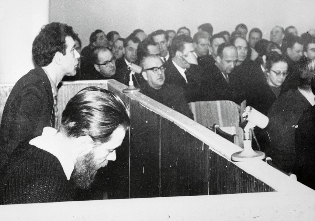 Это был первый процесс по обвинению в инакомыслии после хрущёвской «оттепели». Годом ранее судили Бродского, но формально — за тунеядство. Суд над Синявским и Даниэлем шел всего четыре дня — с 10 по 14 февраля 1966 года на выездном заседании Верховного суда РСФСР в центре Москвы на Краснопресненской набережной. Процесс сделали условно открытым, но попасть на него было непросто — пропуска выдавали в Союзе писателей.
