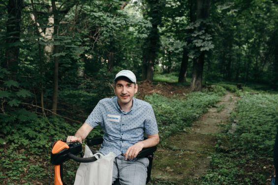 Павел (в центре) разбирает реквизит после пикника. «Паша, опять геройствуешь!» — смеется сотрудница фонда, проходя мимоФото: Татьяна Сикорская для ТД Павел продолжает помогать фонду «Живи сейчас». Развозит оборудование пациентам. Учит им пользоваться. Поддерживает людей с БАС. «Это заполняет пустоту и помогает пережить горе».