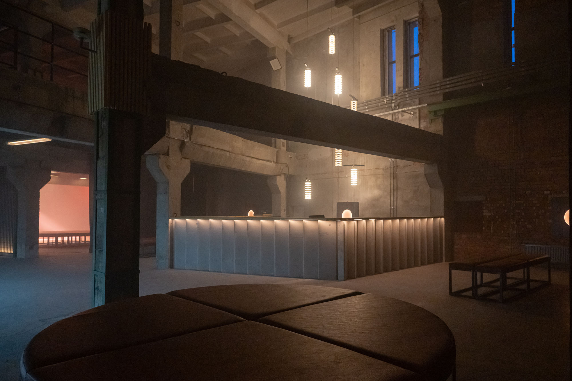Общая площадь внутреннего пространства — 1,5 тысячи квадратных метров; его разделили на два этажа. Работы в здании стартовали в ноябре и заняли около трех месяцев, рассказал «Бумаге» Артем Зотиков, основатель 2A Production и партнер Roots United по созданию нового пространства. Его же команда работала над фестивалями Present Perfect и первой площадкой «К-30».
