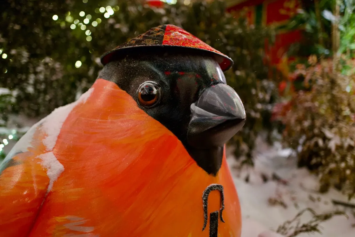 Организаторы тоже это понимают и пытаются создать образ Китая, близкий каждому. Звезда фестиваля — розовощекий снегирь в традиционной азиатской соломенной шляпе. Их по всей площади несколько, но один из них стоит уже без шляпы…